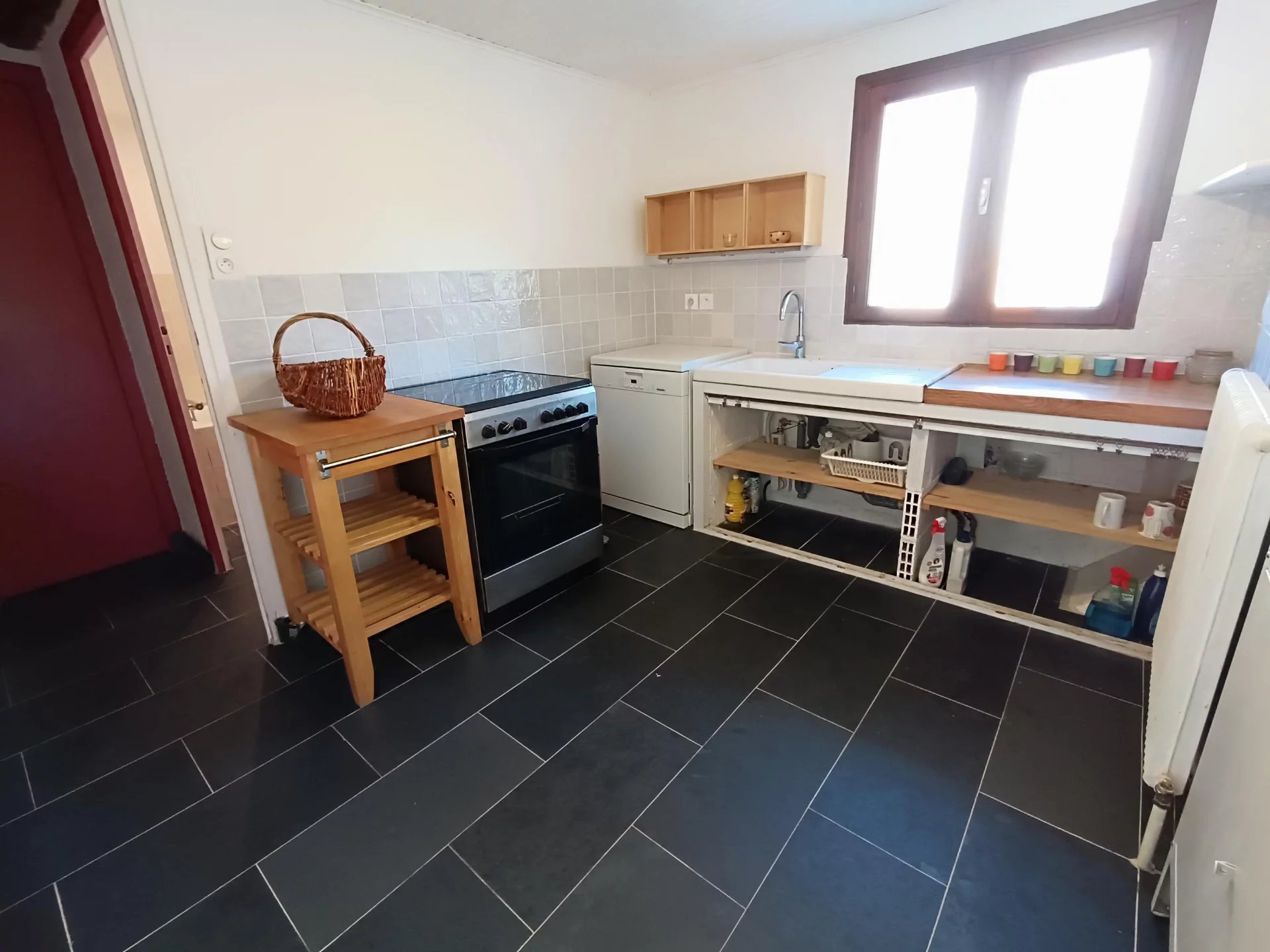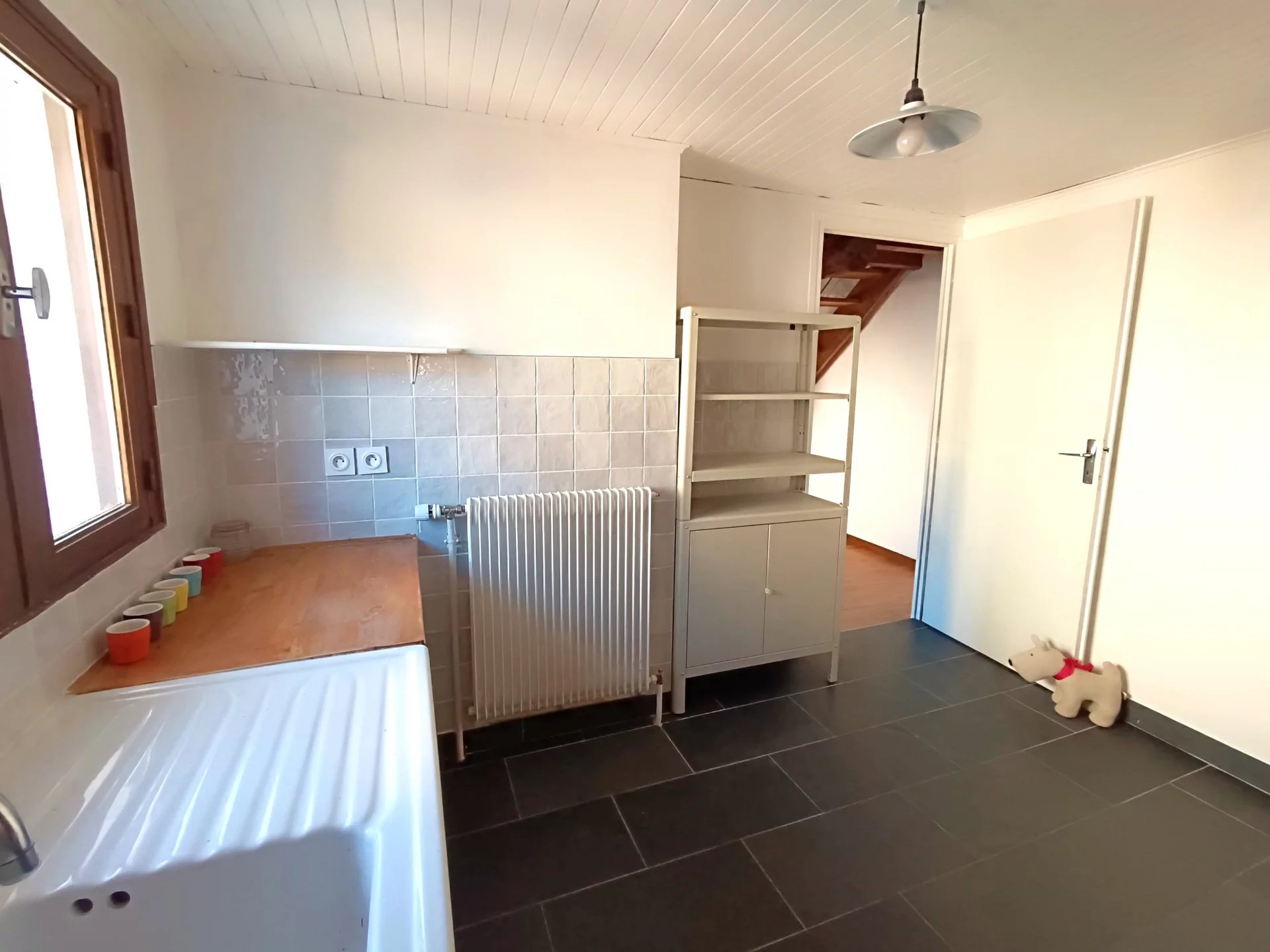 -Au 1er , un wc , une belle salle de bain entièrement refaite en 2023 , une agréable cuisine semi ouverte et une belle pièce de vie avec poutres apparentes et escalier en bois massif. Cette pièce comprend un coin repas avec cheminée non tubée et un espace salon avec une jolie vue dégagée coté Est .