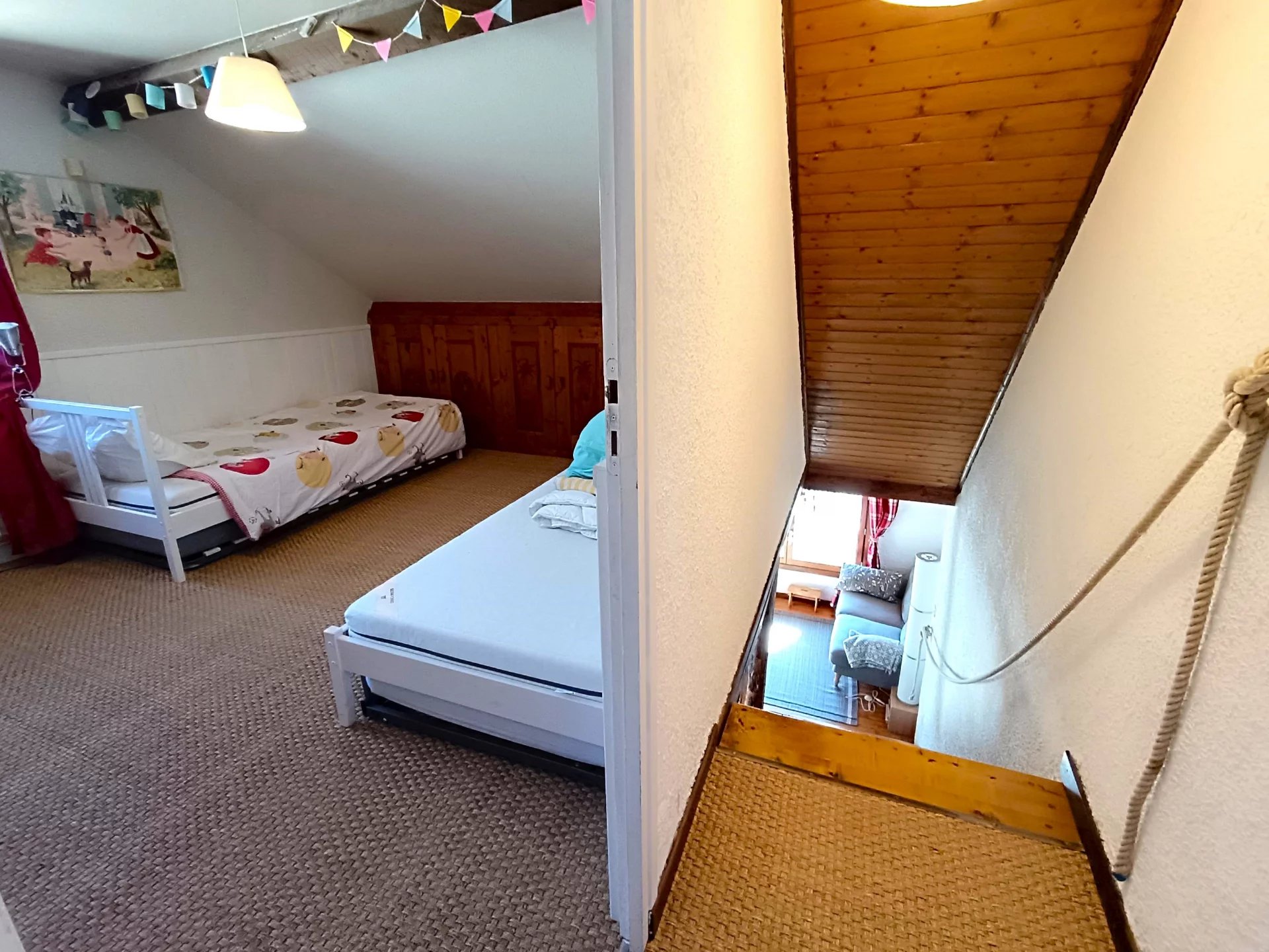 -Au dernier étage ,vous trouverez 2 belles chambres spacieuses avec placards bois en sous pente . Sol en sisal.