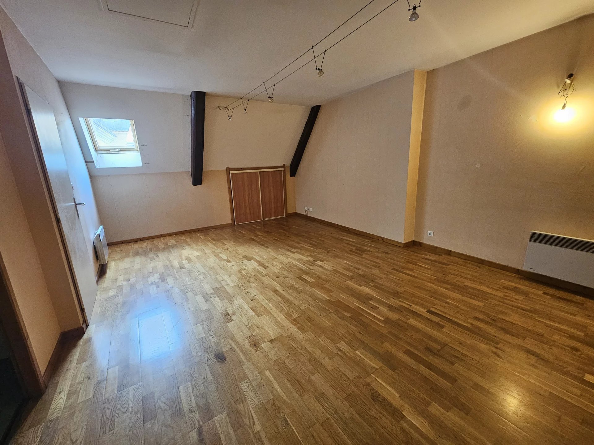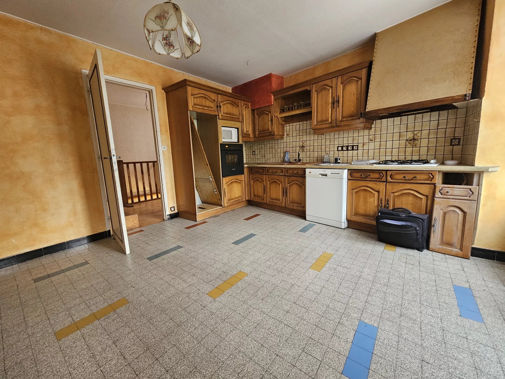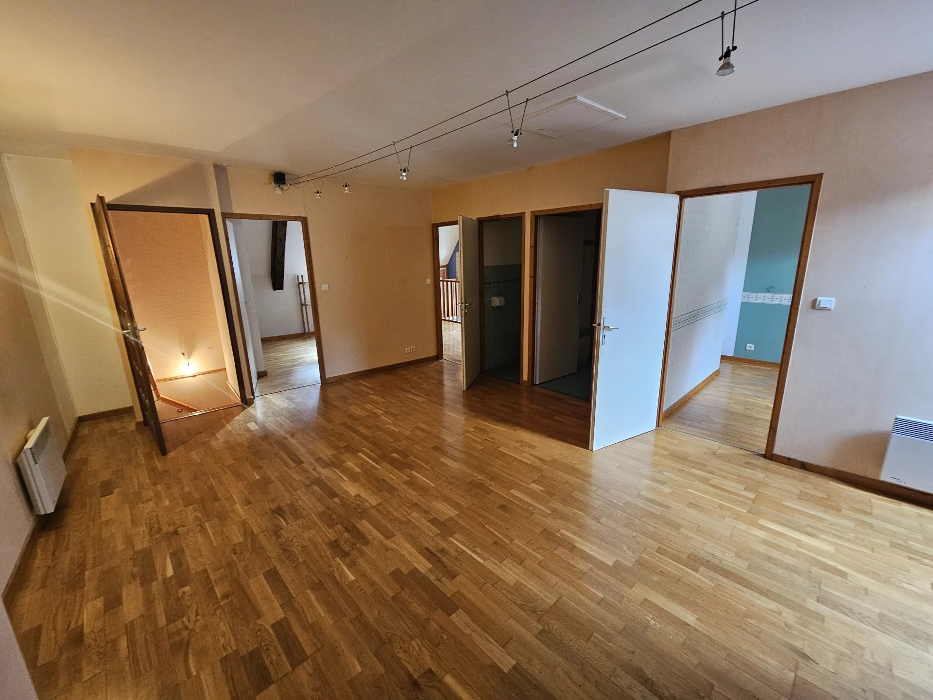 A l'étage, un appartement à rénover d'environ 140m². Composé d'un hall, une cuisine, un salon - salle à manger, une salle de bains et un toilette séparé.