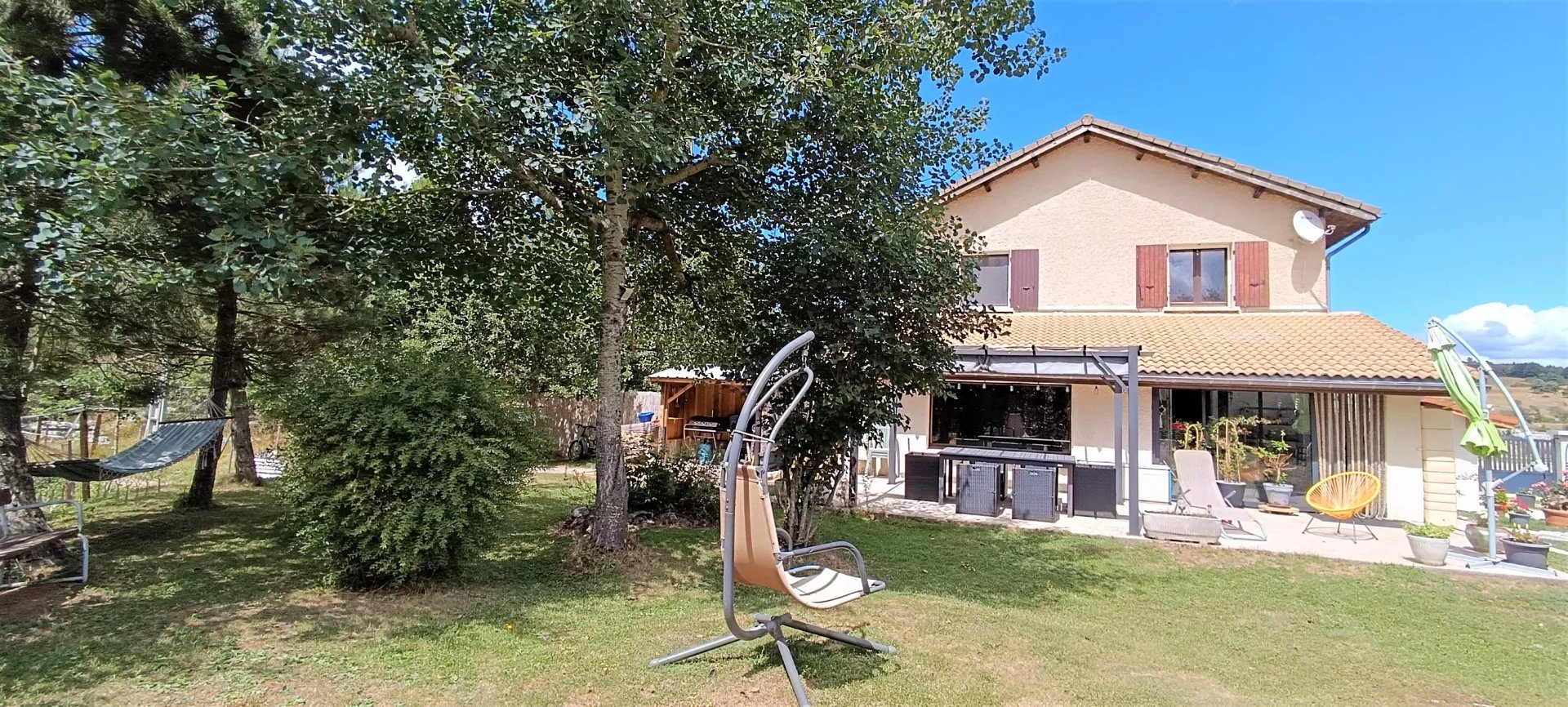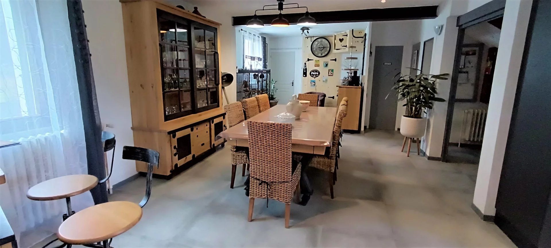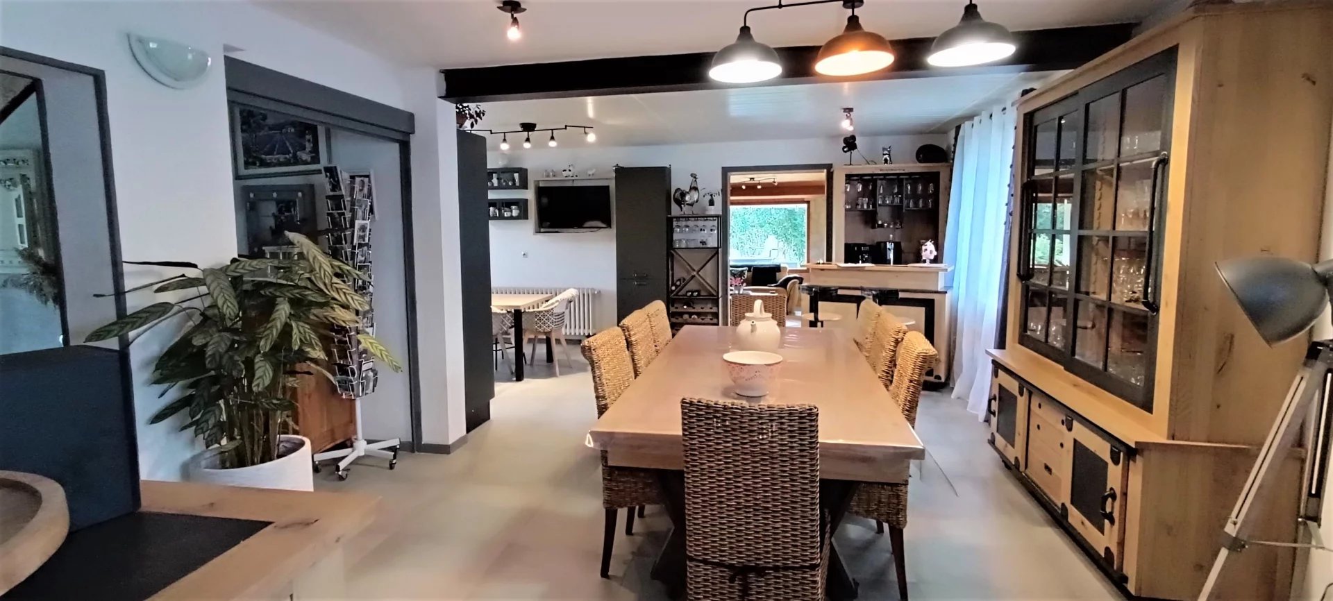 La maison a été rénovée entre 2022 et 2023 avec des prestations de qualité. Elle se compose ainsi : Sas d'entrée, entrée avec escalier ,grande pièce de vis de plus de 48m2 avec cuisine ouverte toute équipée et accès à la véranda . Salon cocoon avec vue panoramique et poêle à bois , terrasse avec pergola aluminium ,cellier ,wc ,4 chambres à l'étage plus un espace bureau en mezzanine salle de bain et grenier. Le grand garage de 34m2 construit en 2022 est accessible par l'intérieur de la maison tout comme la chaufferie /atelier de 22m2. La maison dispose d'une partie gîte attenante avec entrée indépendante ( pas de vis à vis ). D'une surface d'environ 60m2,il se compose d'une pièce de vie ,d'une cuisine séparés d' un wc ,de 2 chambres mansardées à l'étage et d'une salle de douche à l'étage inferieur . Accès directe sur jardin.