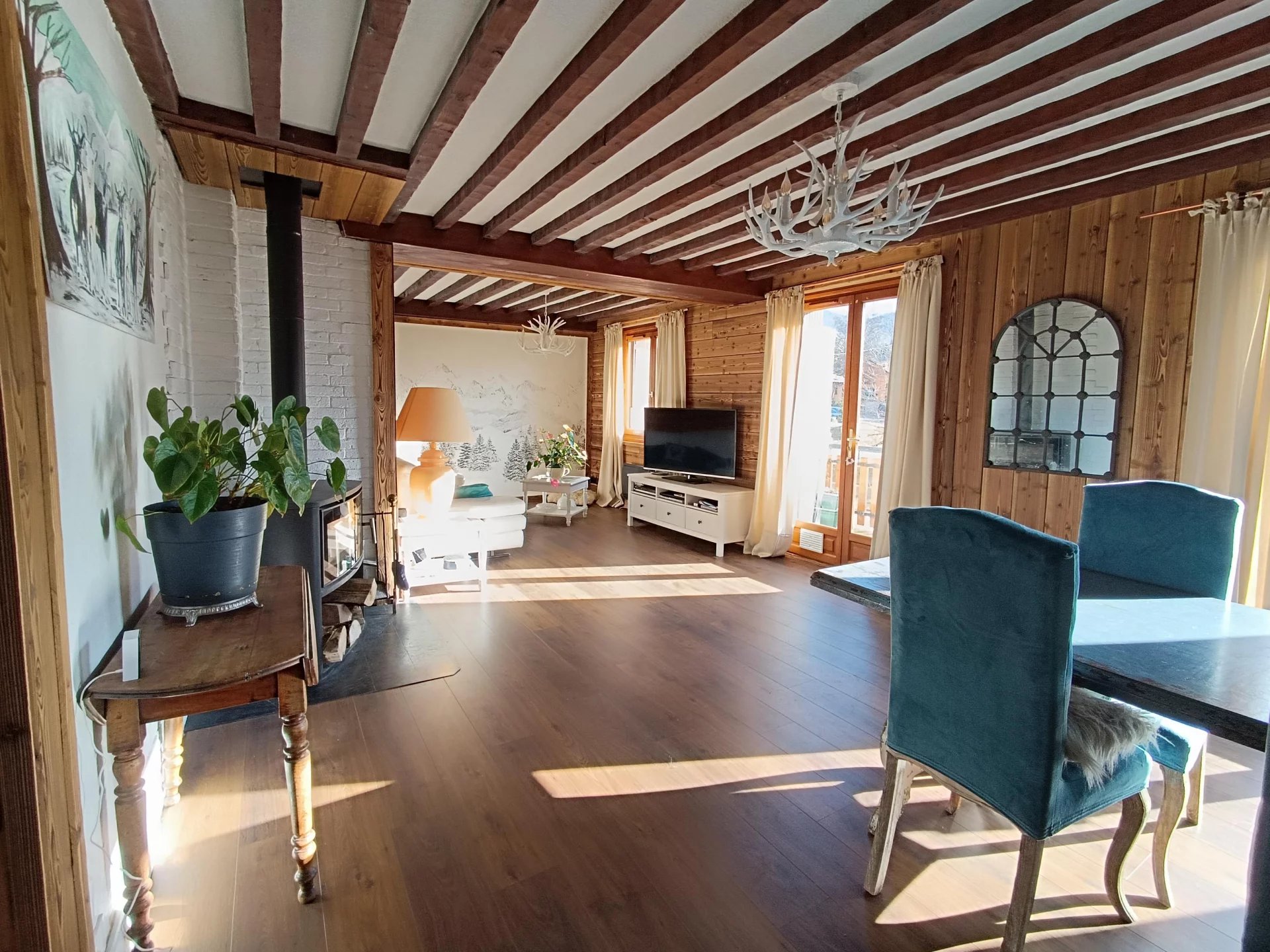 Villard de Lans . ESPACE IMMO 38 (Karine o6 01 07 02 55 ) vous propose ce très bel appartement chaleureux et lumineux ,entièrement rénové dans un esprit "Montagne" . Ce dernier est bien situé avec tous commerces ,services et activités à pieds ! Entièrement rénové ,cet appartement atypique et très cosy vous séduira par ses beaux volumes ,sa grande pièce de vie lumineuse ( Exposition plein Sud) ,sa belle cuisine , ses 3 chambres au calme et son grand balcon terrasse avec vue montagnes. L'isolation a été refaite et l'appartement offre de belles performances thermiques avec un DPE en C. Situé au 1er étage d'une petite copropriété de 5 appartements avec syndic bénévole , les charges sont très faibles ( Environ 200€/an ) . L'appartement bénéficie d'un grand balcon/terrasse de plus de 22m2 exposé Sud ,d'un espace de stationnement ,d'une grande cave ,d'un casier et d'un espace aménagé en grenier . Il se compose ainsi : Entrée spacieuse avec nombreux rangements , grande pièce de vie de plus de 40m2,avec cuisine ouverte toute équipée ,espace salon avec poêle à bois bûches et accès au balcon. Buanderie/atelier ,3 chambres dont une très belle suite parentale avec salle de bain balnéo ,toujours dans l'esprit chalet ! Salle d'eau et wc . Le chauffage principale est un poêle à bois et vous trouverez aussi des radiateurs électriques basse consommation en appoint ( Inertie sèche ) L'appartement est très bien isolé et bénéficie d'un très bel ensoleillement . Le centre du village est facilement accessible à pieds ( Tous commerces et activités ,navettes ski, piscine ,patinoire , cinéma, randonnées ,etc... ) . -Faibles charges : environ 200€/an . - Taxe foncière : 1640€/an - DPE/C et GES/A PRIX de vente :425.000€ honoraires agence inclus à la charge du vendeur . N'hésitez pas à me contacter si vous souhaitez avoir plus de renseignements ou convenir d'une visite . CONTACT : Karine :o6 01 07 02 55 ou espaceimmo.goyot@hotmail.com Cette annonce immobilière a été rédigée par Karine GOYOT ,agent commercial immobilier immatriculée au RSAC de Grenoble sous le n° 415 296 797 . Les informations obligatoires sur les risques auxquels peut être exposé ce bien sont disponibles sur le site Géorisques : www.géorisques.gouv.fr