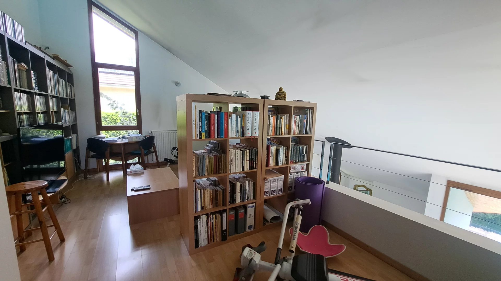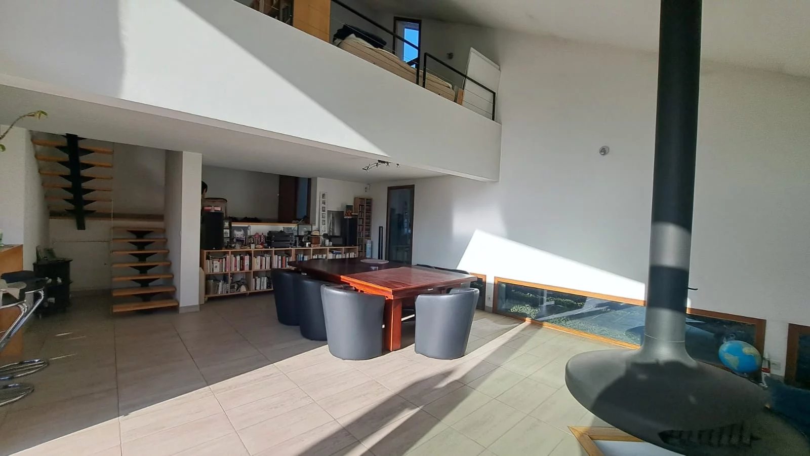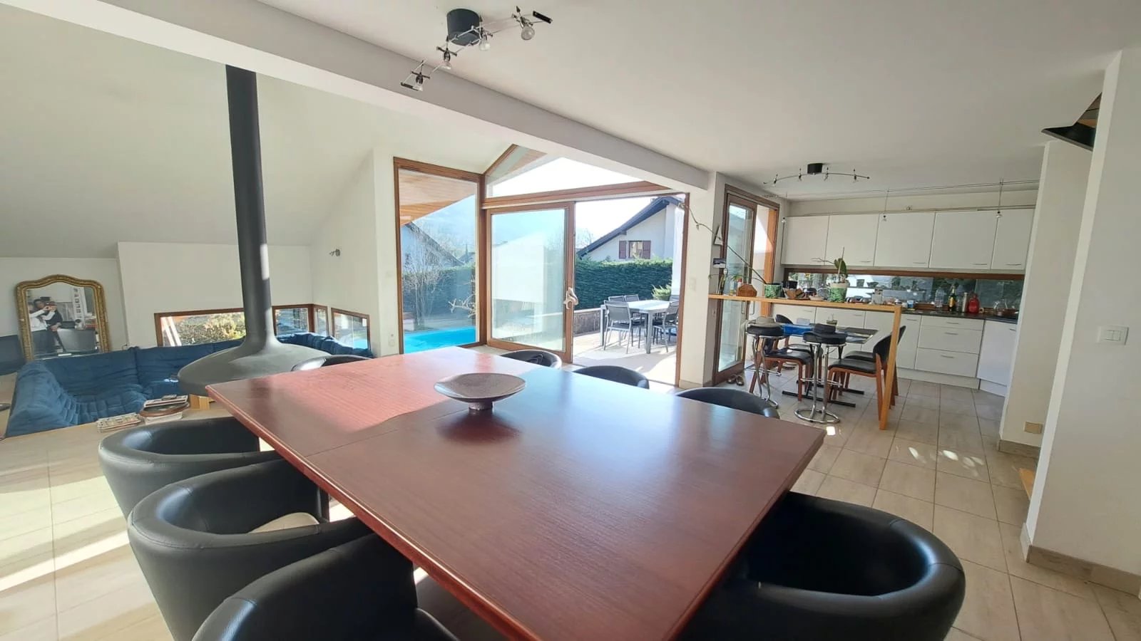 L'ensemble s'ouvre sur une grande terrasse et une piscine 10 x 5m offrant une vue splendide sur les massifs de Belledonne. Le séjour est également surplombé par une mezzanine, offrant un espace supplémentaire et une vue dégagée sur la pièce à vivre.