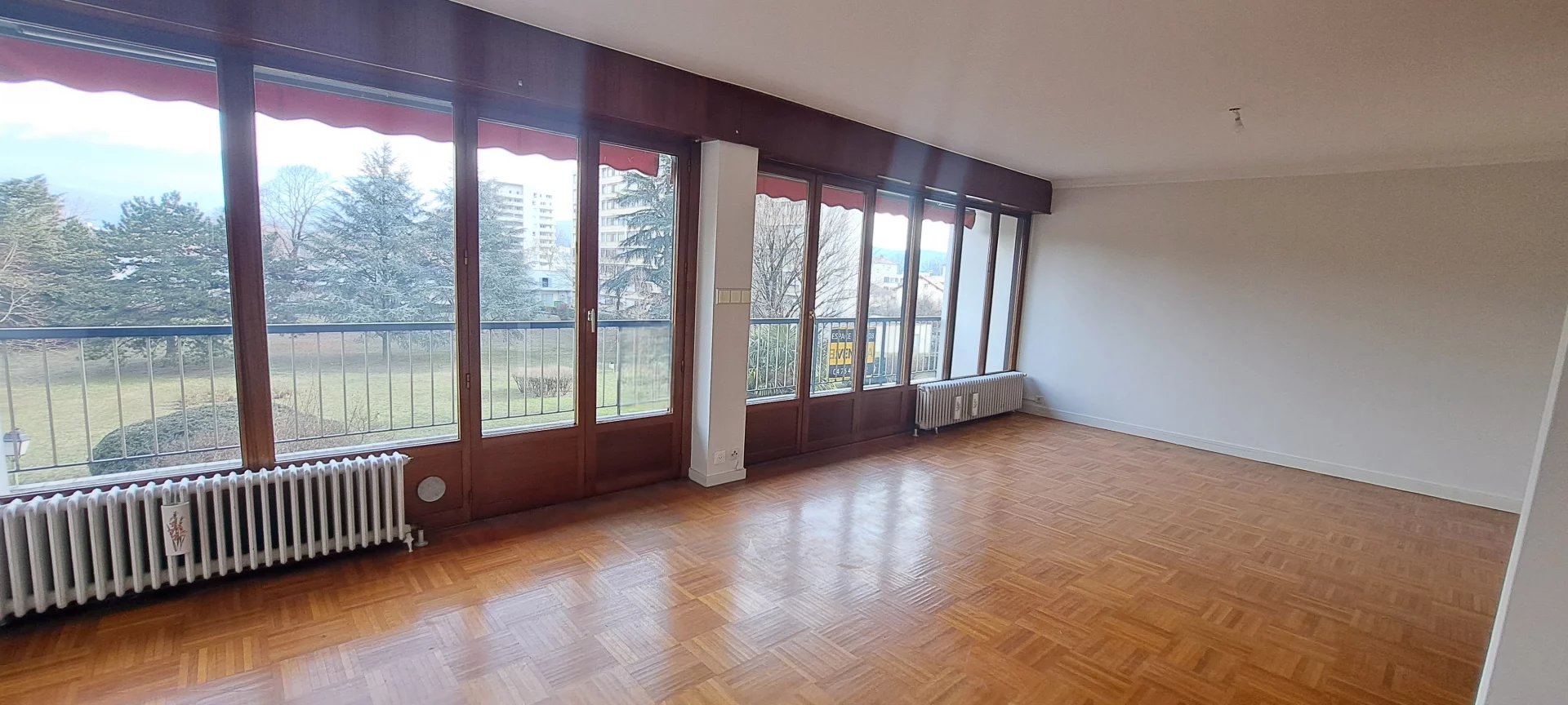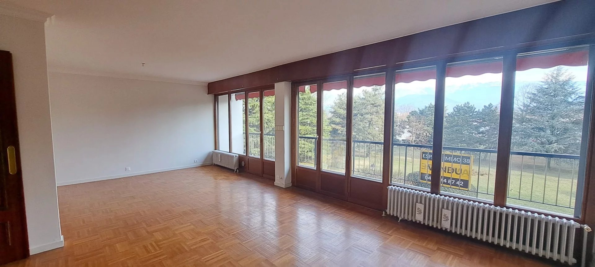 Cet appartement de 109 m² se compose d'un grand hall d'entrée avec dressing, de deux chambres spacieuses de 16 m2, d'un séjour double ouvrant sur un balcon filant offrant une vue dégagée sur la chaîne de Belledonne. La cuisine équipée est accompagnée d'une buanderie et d'un cellier, apportant un grand espace de rangement, une salle de bain et des toilettes séparées. La partie séjour peut être cloisonnée afin de créer une troisième chambre facilement.