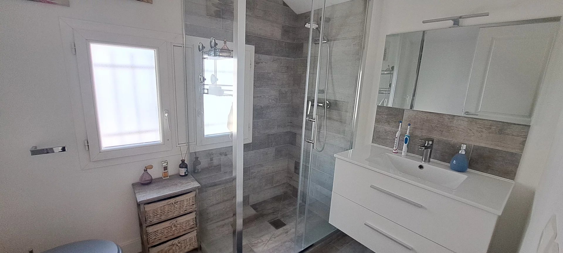 Chauffage individuel électrique au sol (DPE : D), VMC, huisseries double vitrage, fibre optique, une place de stationnement.