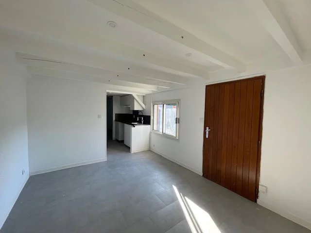 Une petite maison individuelle T2 de 31 m2 habitables composée d'une pièce de vie avec coin cuisine meublé donnant sur une terrasse close d'environ 30 m2, une chambre séparée et une salle d'eau avec wc.