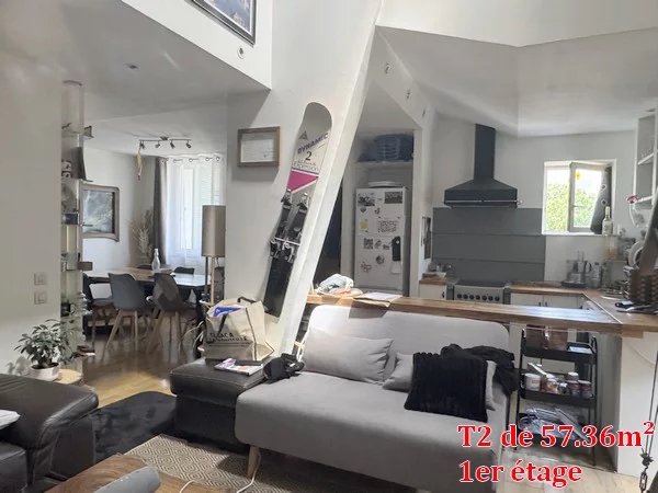 - Appartement en duplex T2 de 57,36 m² avec garage. Loyer mensuel de 485€ depuis le 15 septembre 2023. Classe énergétique E.