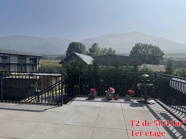 - Appartement T2 avec terrasse et garage de 58,41 m². Loyer mensuel de 450€ depuis le 17 décembre 2020. Classe énergétique G.
