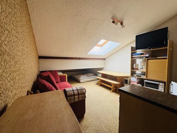 Studio de 14m² loi Carrez et 29,90m² en surface au sol, localisé au Mélèze, à proximité immédiate des pistes. Ce logement au quatrième étage comprend un espace de vie qui s'ouvre sur une petite cuisine, une salle d'eau avec des toilettes et une mezzanine qui n'est pas prise en compte dans la superficie mentionnée. Tout cela avec un rangement pour les skis. Charges annuelles de 1 172.24€ Taxe foncière de 447€ Taxe d'habitation pour les biens secondaire de 379€ Mme Fiorani : O6 37 39 57 56 ou jf.espaceimmo38@gmail.com. La présente annonce immobilière a été rédigée par Mme Fiorani, agent commercial en immobilier immatriculé au RSC du Tribunal de Commerce de Grenoble sous le numéro RCS 80377631900011. - UBI_1615331498 -