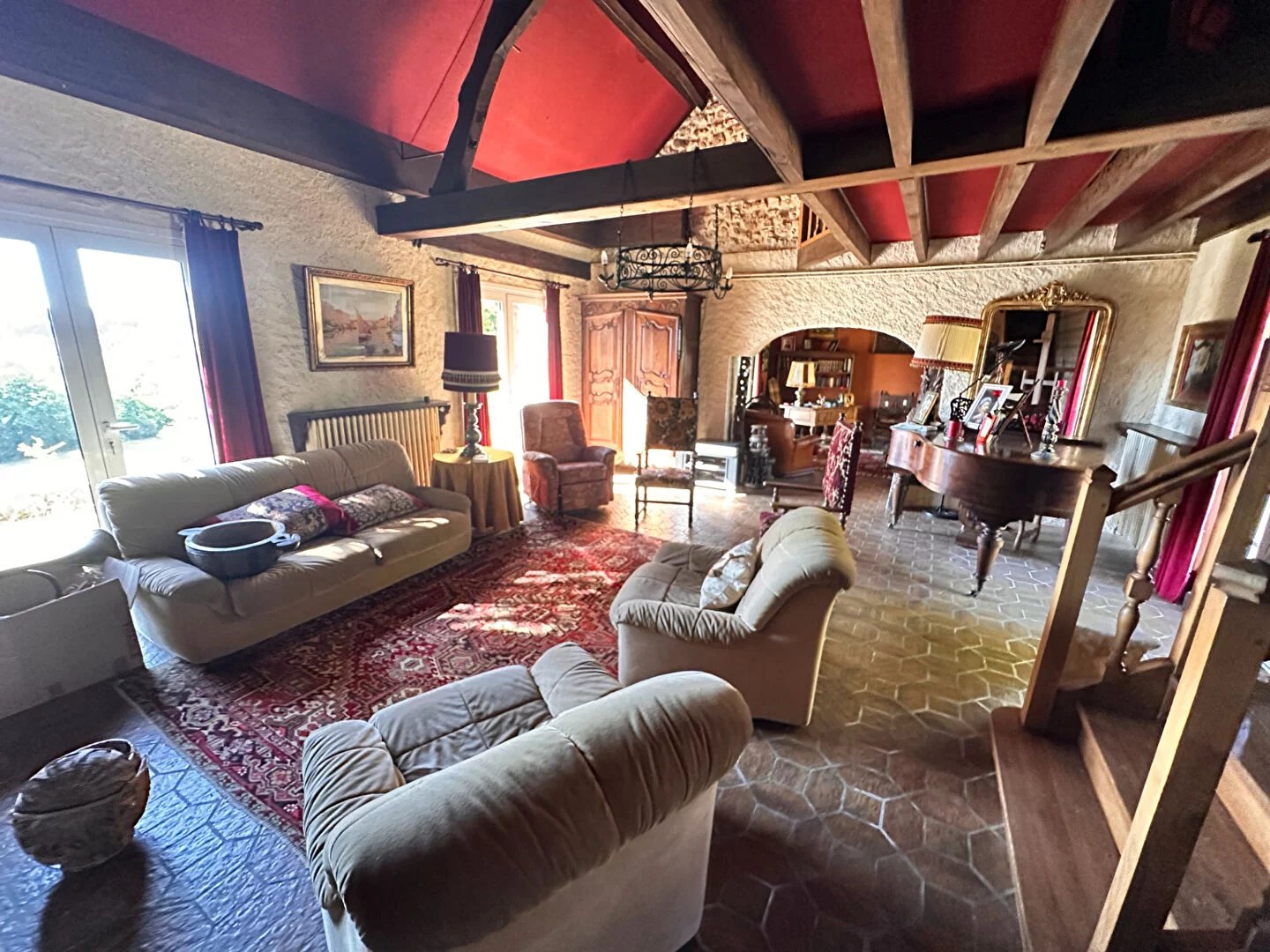 L'agence CAD'IMMO vous propose cette maison de campagne du XIX ième avec une vue panoramique, sans vis à vis, un terrain arboré avec un puits ,de 2ha, très proche de Bergerac à 10 km de l'aéroport et 5 km de la gare ferroviaire. Modifiée dans les années 1970 la surface habitable est de 270 m² garage 25 m², cave 24 m² en terre battue, deux terrasses couvertes . Au rez de chaussée vous pouvez découvrir : une cuisine aménagée, trois chambres, une salle de bains, une buanderie deux grands salons avec deux cheminées en pierre, un plafond cathédrale laissant découvrir sa charpente, une mezzanine reliant trois chambres et salle de bains. Pour plus de renseignements n'hésitez pas à nous contacter par mail contact@cad-immo.com ou téléphone au 05.53.735.735
