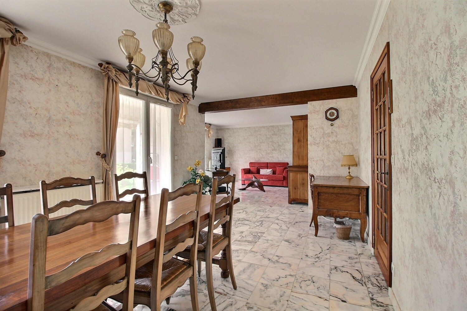 A vendre, rare à la vente ! Appartement spacieux en rez-de-jardin de 112,95 m² env. idéalement situé à proximité immédiate du centre-ville de Chartres. Il comprend : Une entrée avec rangement, Un WC indépendant, Un salon-séjour lumineux avec accès direct à la terrasse et au jardin privatif d'environ 80 m², Une cuisine équipée et aménagée, avec arrière-cuisine, Deux chambres dont une avec dressing et salle d'eau privative, une salle d'eau indépendante avec wc; En complément : Une terrasse agréable donnant sur un jardin clos et privatif, Un box fermé en sous-sol, Une cave. Opportunité à saisir pour ceux qui recherchent un bien rare sur le secteur avec extérieur ! Contactez-nous pour organiser une visite. Copropriété de 344 lots (Pas de procédure en cours). Charges annuelles : 3647 euros.
