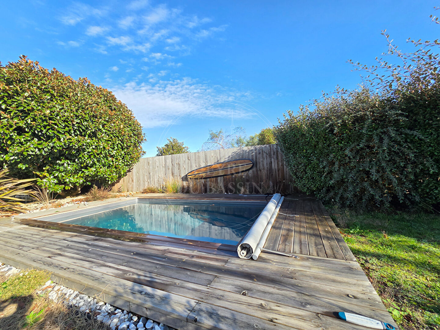 Maison de 134 m², édifiée sur une parcelle de 935 m². Elle se compose d'une entrée ouvrant sur un salon-séjour lumineux, d'une cuisine indépendante, d'une chambre avec salle d'eau, ainsi que d'un cellier / buanderie. Un dégagement dessert trois chambres supplémentaires, une salle d'eau et un WC indépendant. A l'extérieur, vous profiterez d'une agréable terrasse donnant sur une piscine, un cabanon de jardin, le tout dans un environnement calme. (3.88 % honoraires TTC à la charge de l'acquéreur.)