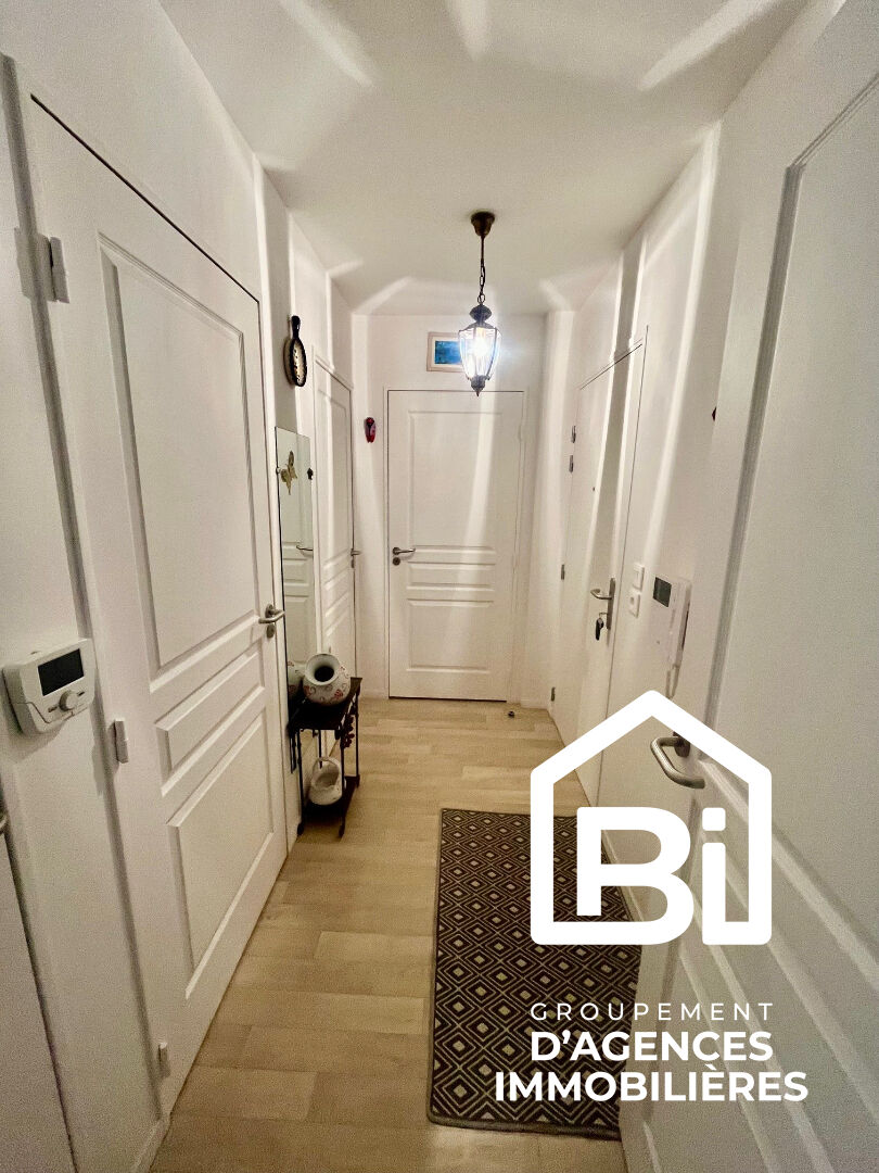 Au coeur du bourg dans résidence récente au 1er étage avec ascenseur bel appartement de trois pièces offrant entrée avec placards séjour-salon donnant sur coin cuisine aménagé, balcon deux chambres, salle d'eau, wc ainsi que deux places de stationnement sécurisées (5.88 % honoraires TTC à la charge de l'acquéreur.) Copropriété de 73 lots - dont 18 lots habitation. Charges annuelles : 1725 euros.