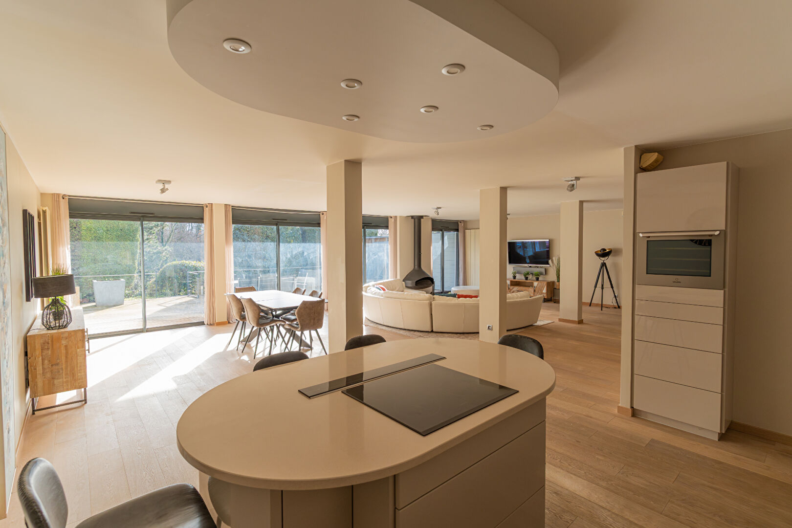 LIMONEST - Bel emplacement pour cet appartement T4 en Duplex d'une superficie d'environ 220 m² situé au sein d'une résidence sécurisée et très bien entretenue, entourée d'un grand parc arboré avec piscine. Ce bien rare à la vente se compose au rez-de-chaussée : - d'une entrée - d'un vaste séjour avec cheminée et de larges ouvertures donnant sur l'extérieur - d'une cuisine ouverte aménagée et équipée - d'une grande terrasse bien exposée sans vis-à-vis - d'un bureau - d'un cellier A l'étage, vous profiterez : - de 3 chambres dont une suite parentale avec salle de bains - d'une seconde salle de bains - d'un dressing - d'un balcon Un garage, une place de parking privative et une cave complètent ce bien. Chauffage individuel gaz. Ses atouts : Bel environnement au calme avec parc paysagé et piscine, résidence intimiste de 4 lots d'habitation, prestations, extérieurs et stationnements. Copropriété de 20 lots - dont 4 lots habitation. Charges annuelles : 13000 euros.