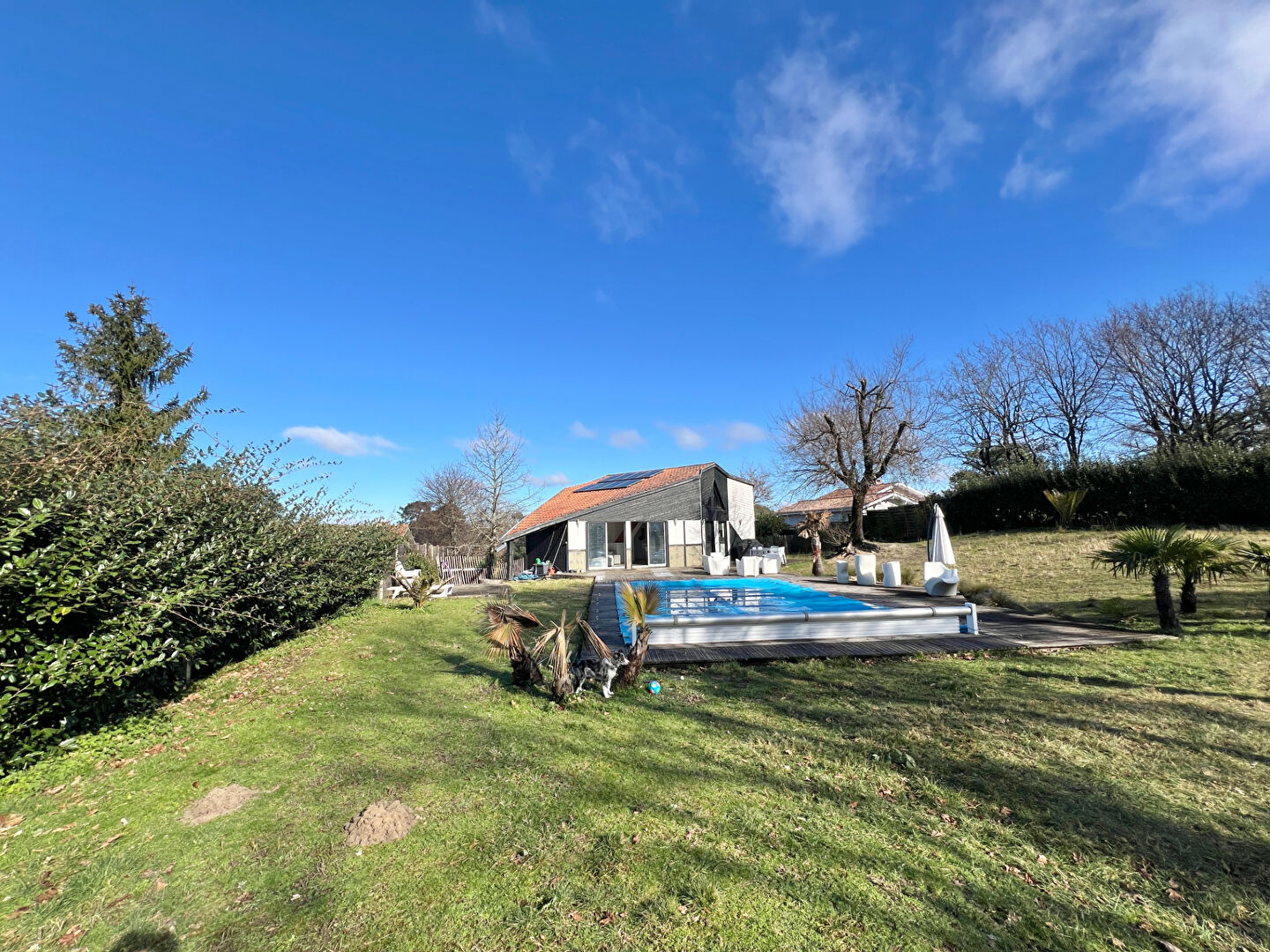 Marin Immobilier vous propose cette belle maison d'architecte située à La Teste-de-Buch, dans le secteur recherché des Portes de l'Océan. Construite en 1993 sur un terrain d'environ 1 700 m², elle offre une surface habitable d'environ 185 m². Dès l'entrée, vous serez séduits par le vaste espace de vie de 80 m² comprenant un salon avec une cuisine ouverte équipée, le tout sublimé par une hauteur sous plafond de 4 mètres. Au rez-de-chaussée, trois chambres, une salle de bains et des WC complètent l'espace nuit. A l'étage, une suite parentale de 36 m² dispose de sa propre salle d'eau, d'un WC et d'un dressing. Le sous-sol ajoute encore au confort de la maison avec une salle de sport, un sauna, ainsi qu'une chambre de 15 m² dotée de sa propre salle d'eau et de WC. Un vaste espace de rangement y est également aménagé. A l'extérieur, le calme absolu et l'absence de vis-à-vis invitent à la détente. Vous profiterez d'un jardin arboré, d'agréables terrasses ensoleillées et d'une piscine de 5x10 mètres. Un garage et plusieurs places de stationnement viennent compléter ce bien. Des travaux de finition sont à prévoir. Contactez-nous pour organiser une visite et découvrir tout le potentiel de cette maison. (2.57 % honoraires TTC à la charge de l'acquéreur.) Julie MARIN (EI) Agent Commercial - Numéro RSAC : 477626733 - Bordeaux.