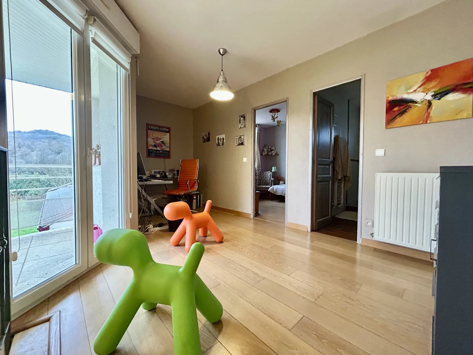 À 15 minutes de Pau. Maison d'architecte très lumineuse, nichée sur un parc paysager et verdoyant. Elle offre des prestations haut de gamme. Parfaitement réfléchie pour une vie de famille, des volumes généreux vous attendent, une grande pièce de vie traversante de 55 m2 équipée d'une cheminée avec insert, une arrière-cuisine avec ouverture sur l'extérieur, une grande terrasse, une suite parentale au rez-de-chaussée, trois chambres à l'étage, un bureau en mezzanine et une buanderie viennent se rajouter à ce bien extrêmement fonctionnel. Double garage, chauffage au sol, piscine... Votre dénicheur de bonheur vous attend pour une visite !