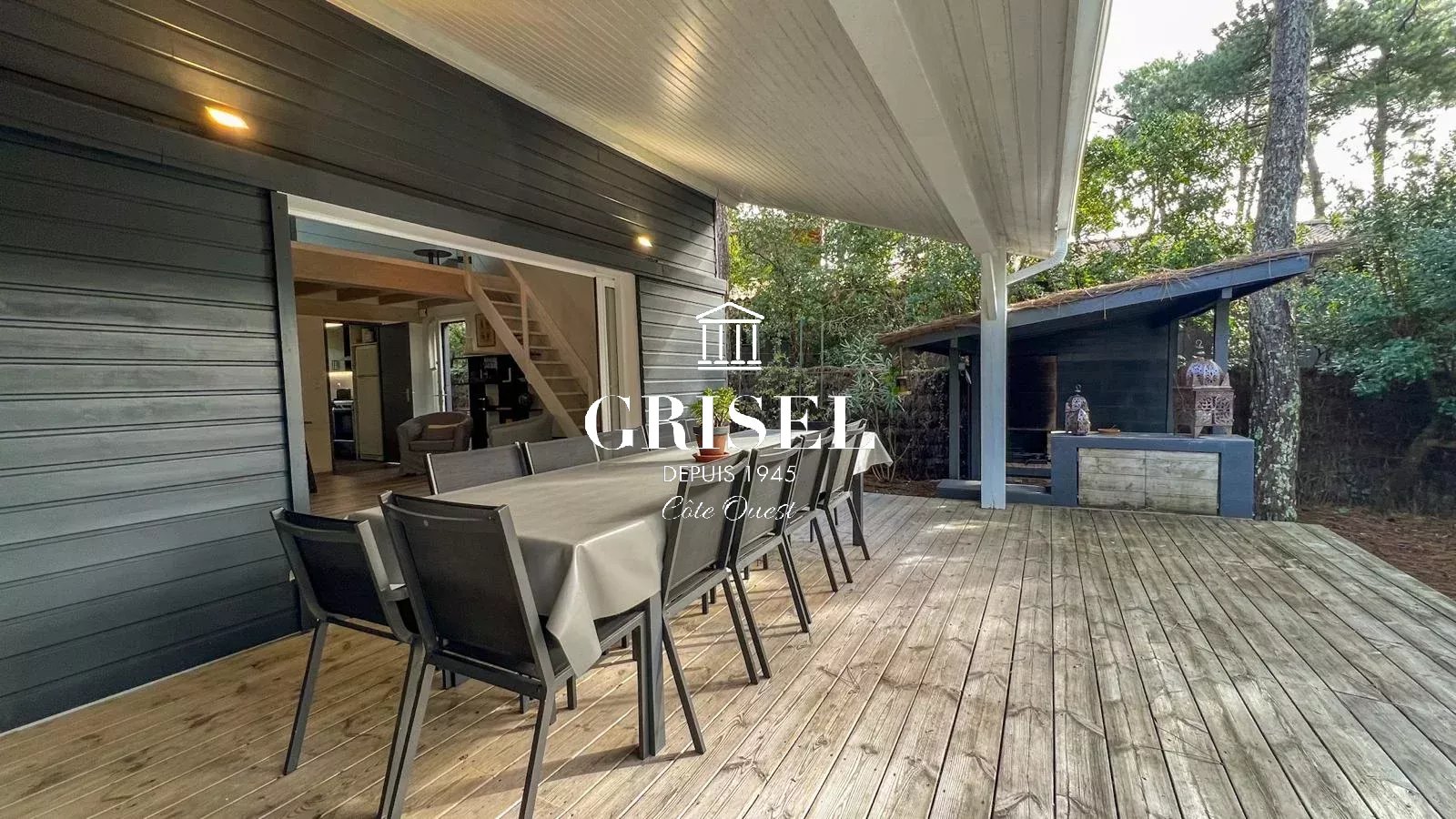 Située dans un environnement calme et recherché de Piraillan, cette villa offre un cadre de vie idéal pour les familles ou comme résidence secondaire sur la Presqu’île du Cap Ferret. Édifiée sur une belle parcelle arborée et calme de 1 214 m², la maison principale développe 170 m² et présente la particularité de pouvoir être divisée en deux logements indépendants, idéale pour accueillir deux familles ou pour un projet locatif. Chaque partie comprend : - un rez de chaussé avec un salon spacieux, une cuisine aménagée, une chambre, une salle d’eau et une buanderie - un étage avec un pallier, 2 chambres et une salle d'eau Grâce à une dépendance de 22 m² comprenant deux chambres supplémentaires et une salle d’eau, la propriété offre au total huit chambres et cinq salles d’eau, permettant à chacun de profiter de son propre espace et de toute l’intimité nécessaire. À l’extérieur, vous profiterez d’une grande terrasse couverte de 40 m², d’une cuisine d’été et d’un abri de jardin. La villa bénéficie du double vitrage et d’un charme authentique qui s’intègre parfaitement à son environnement naturel. Un bien rare à découvrir rapidement, alliant calme, espace et potentiel dans l’un des quartiers les plus prisés du Cap Ferret.