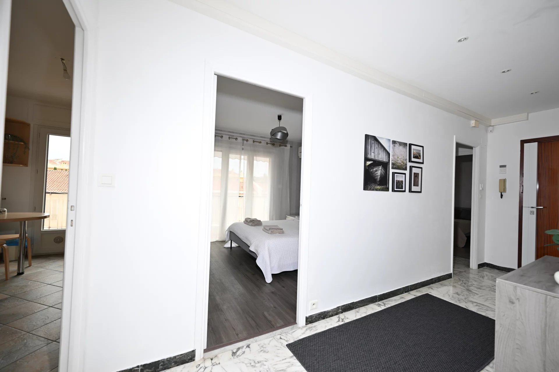 Appartement de trois pièces situé au dernier étage, bénéficiant d’une belle luminosité et d’une vue dégagée sur les montagnes. Le séjour s’ouvre sur une loggia, et les deux chambres disposent chacune d’un balcon donnant sur la cour intérieure, garantissant un cadre calme. La cuisine est équipée et fonctionnelle. Un grand garage fermé vient compléter le logement. La cave offre un espace de rangement supplémentaire. La climatisation assure un confort optimal en toutes saisons Beaulieu-sur-Mer, proche des commerces, des transports et du bord de mer. Points forts : Dernier étage, lumineux et calme Vue montagnes dégagée Ascenseur dans d'immeuble Séjour avec loggia Deux chambres avec balcon Cuisine équipée Grand garage fermé Cave Climatisation