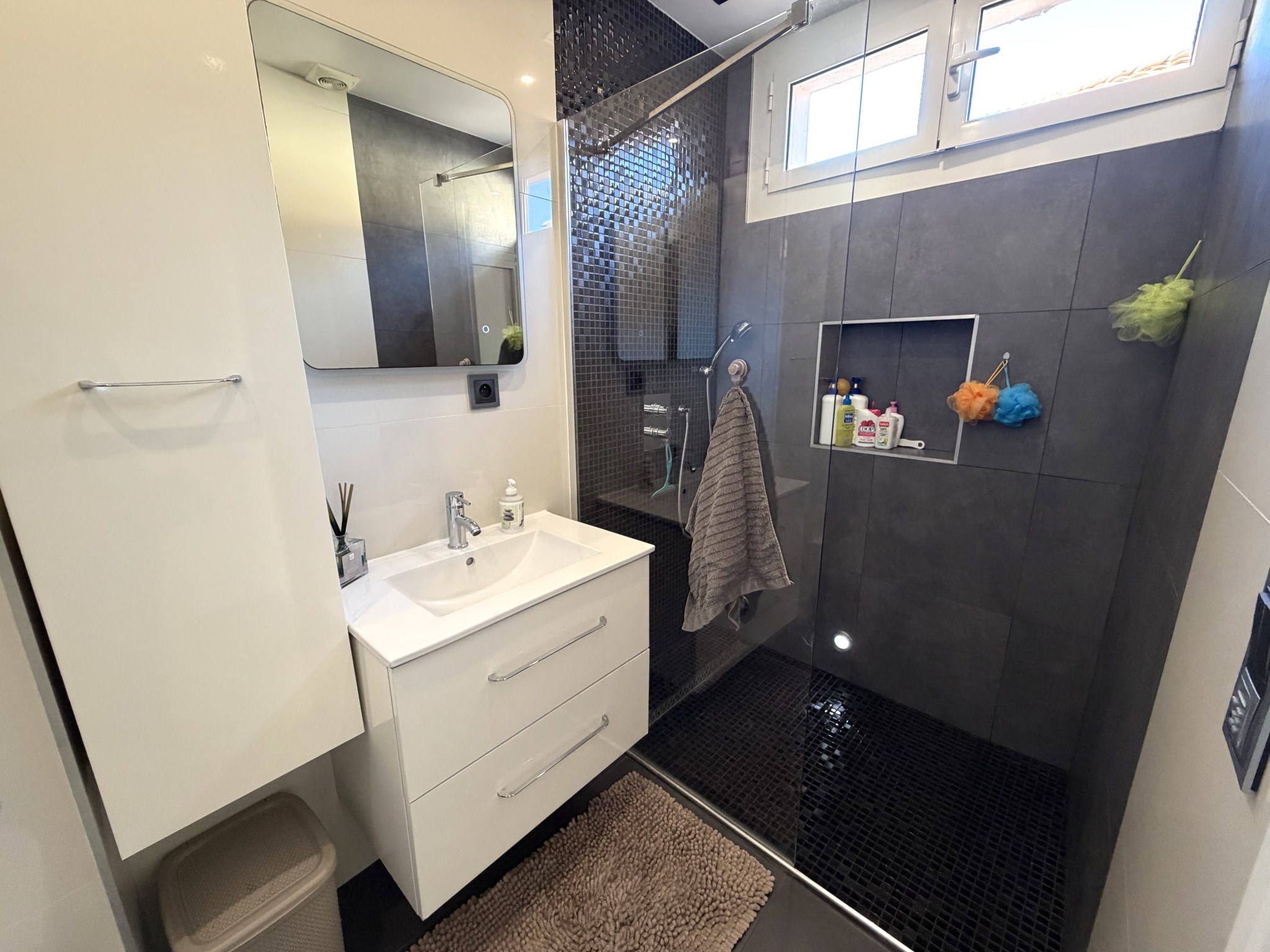 Vendu entièrement meublé, ce bien se compose d'une cuisine US ouverte sur un petit salon, de deux chambres confortables, d'une buanderie, de nombreux rangements, d'une salle de douche moderne et d'un second WC indépendant. Vous apprécierez également ses équipements haut de gamme : visiophone, système audio connecté radio et bluetooth avec enceintes intégrées.