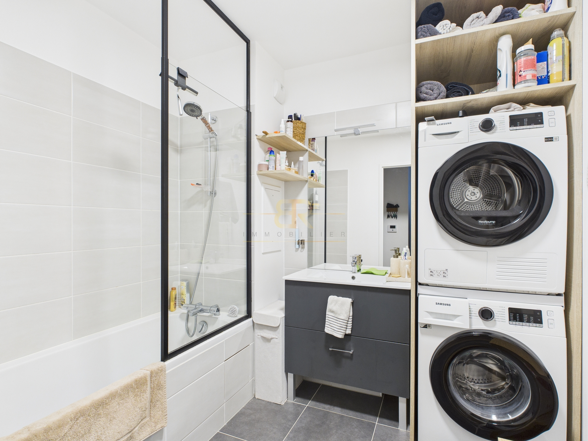 Au 1er étage d'une résidence moderne, sécurisée de 2023, il se compose d'une entrée avec rangements, d'un séjour lumineux avec cuisine ouverte entièrement équipée, donnant sur un balcon exposé plein sud, de deux chambres, d'une salle de bains ainsi que de WC indépendants.Vous profiterez d'un large balcon filant d'environ 15 m2, accessible depuis les trois pièces principales.