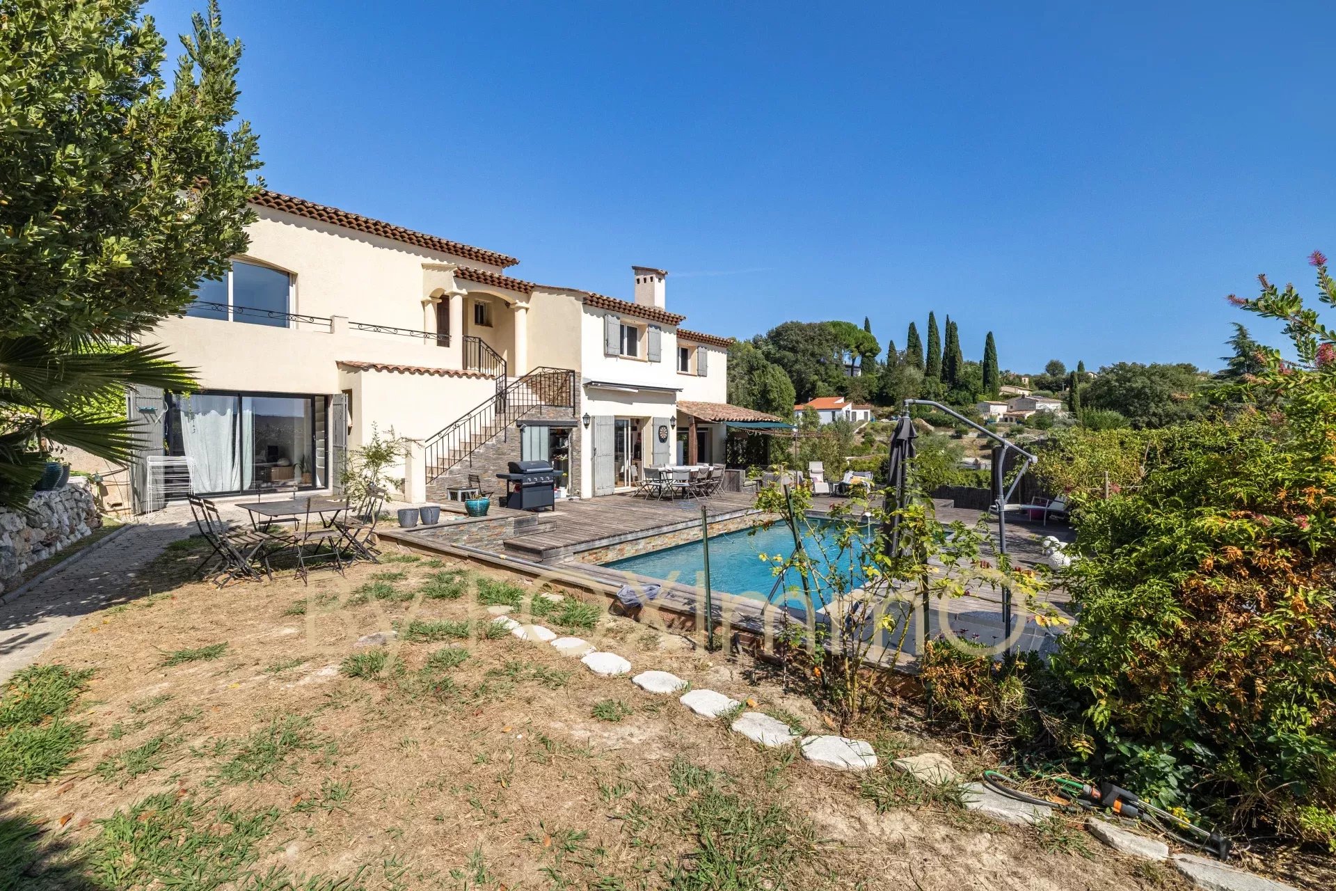 La villa provençale construite en 1993 sur un terrain d'environ 1 000m² avec une piscine au sel rénovée en 2020 et plusieurs emplacements de stationnements.