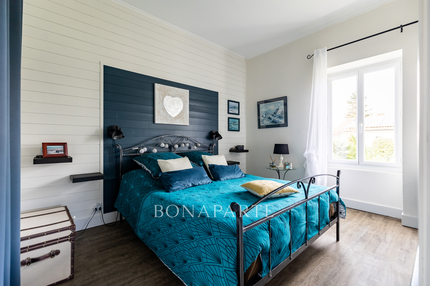 Au rez-de-chaussée, une chambre parentale intimiste de 10 m2 avec sa salle d'eau privative. À l'étage, deux chambres de 11 m2 partagent une salle de bain de 3,5 m2, soigneusement aménagée.