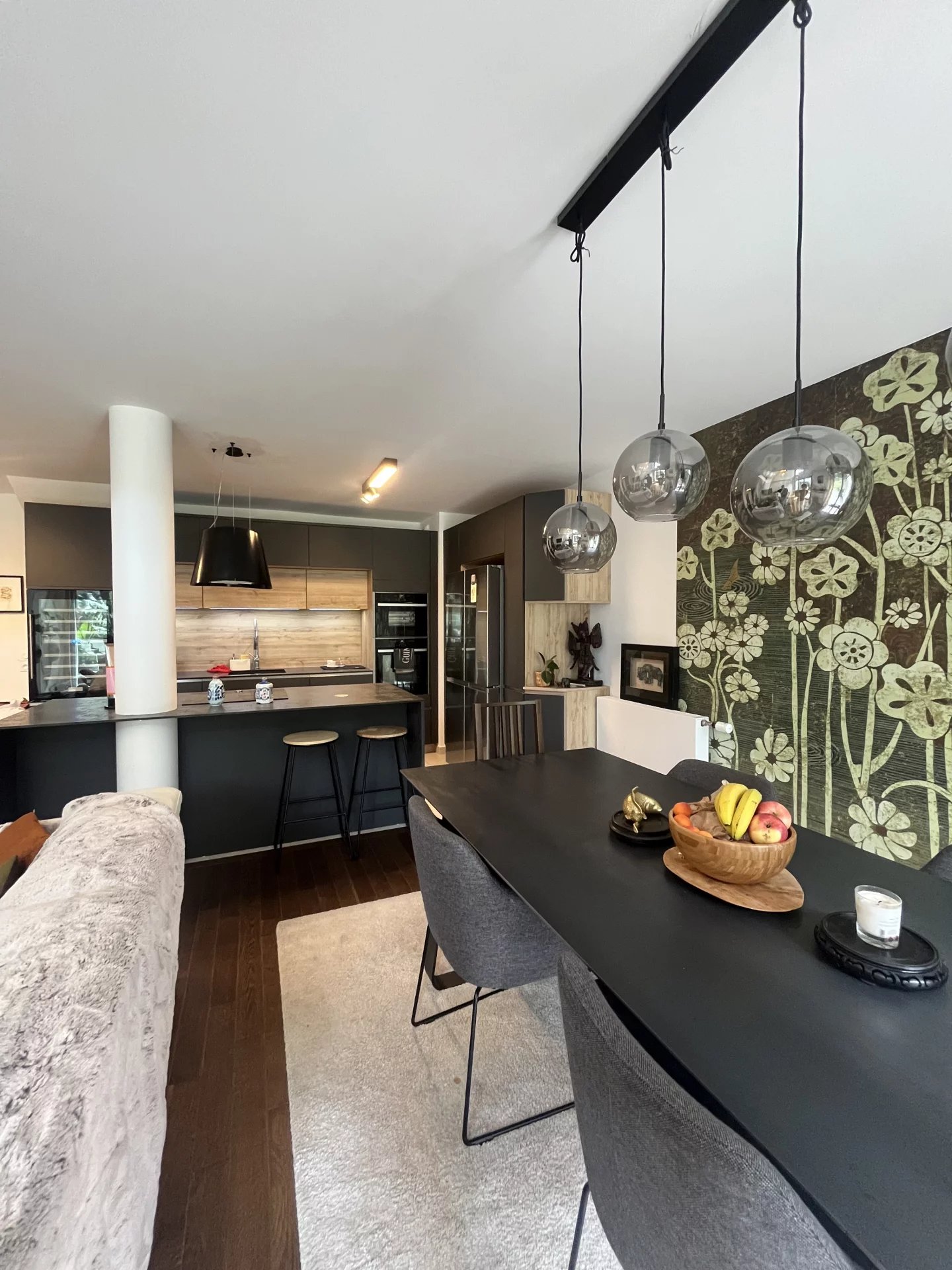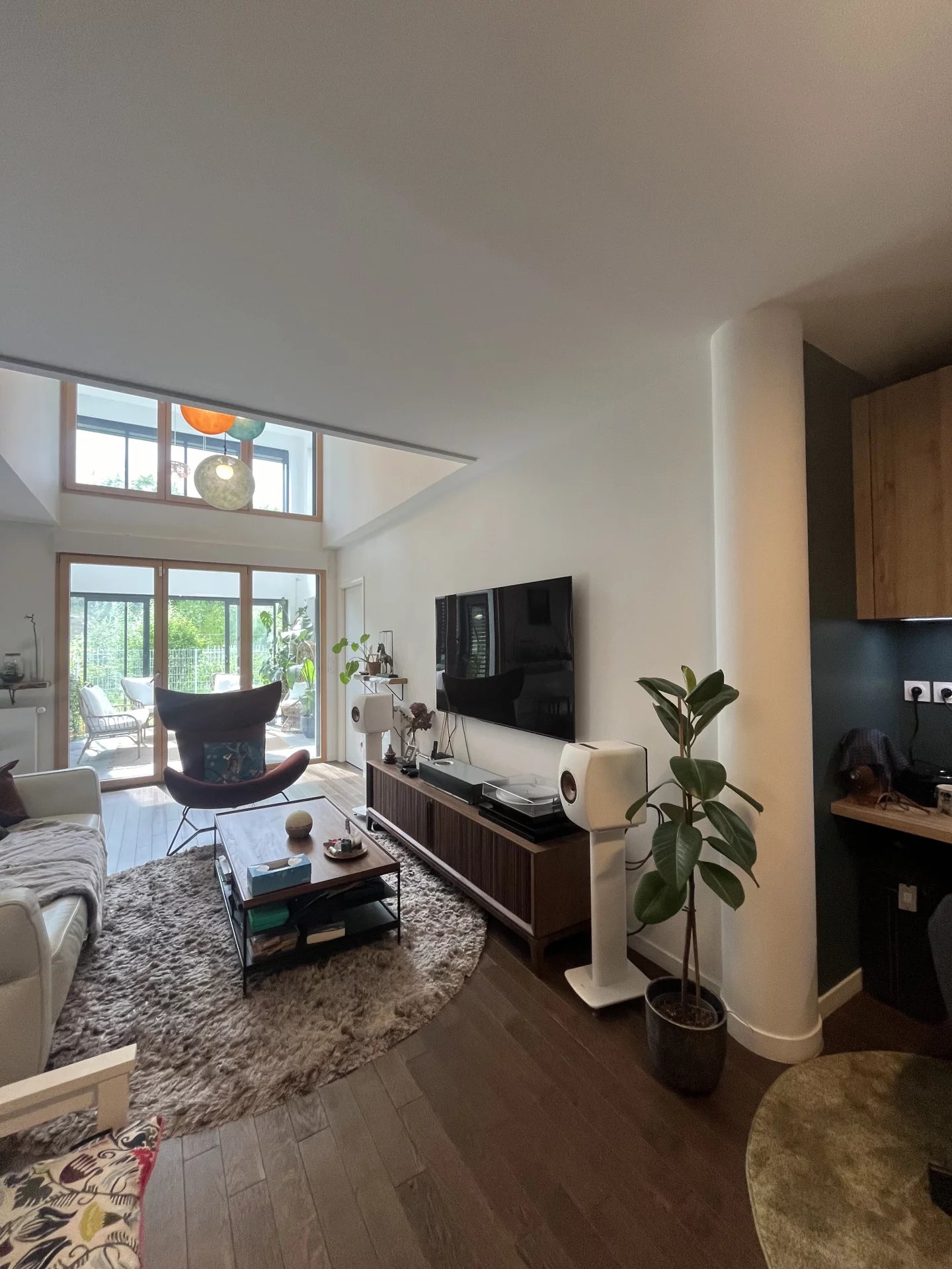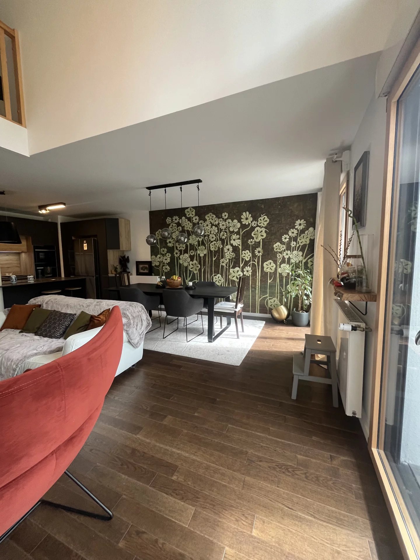 Au Rdc vous trouverez une entrée avec de nombreux rangements, un Wc avec lave mains puis laissez vous séduire par ce vaste séjour lumineux avec cuisine ouverte totalement équipée ( Double four + Plaque + Lave Vaisselles + Hotte + Réfrigérateur + Cave à vins... ) ainsi qu'un espace bureau sur mesure.