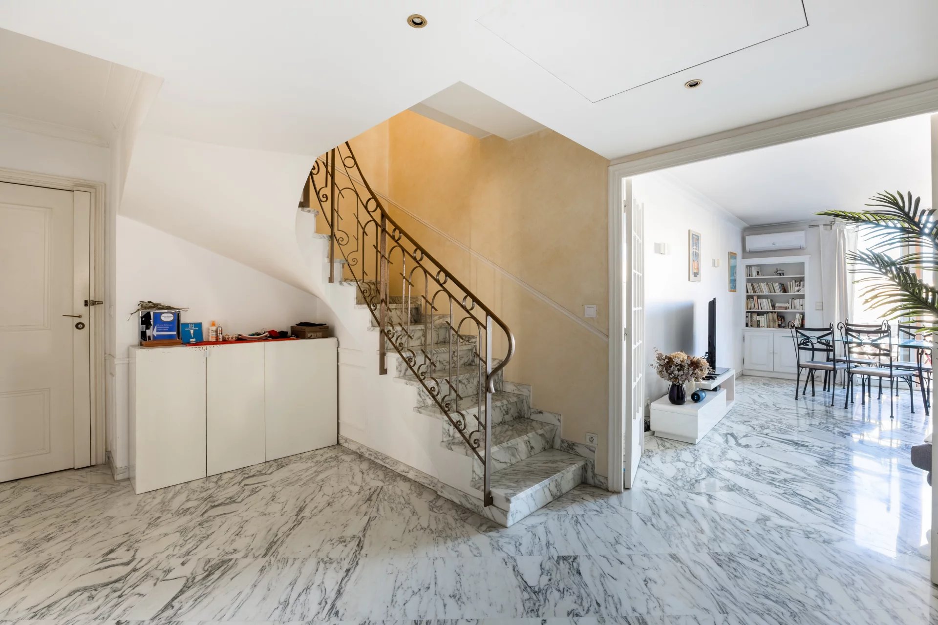 Dans le secteur le plus recherché de Nice, au cœur du très élégant et sécurisé Parc Saint-Aignan, découvrez ce splendide duplex de 143 m² situé au 4ᵉ et dernier étage d’une résidence de grand standing, parfaitement entretenue et entourée de verdure. Idéalement positionné au-dessus du Port de Nice, l’appartement offre un environnement calme, tout en restant à quelques minutes seulement des commerces, transports et restaurants prisés du quartier. 🌅 Un panorama exceptionnel Baigné de lumière, ce bien rare bénéficie d’une vue panoramique sur les montagnes et la ville, complétée par une charmante vue mer latérale. 🏡 Un agencement remarquable L’entrée se fait par un vaste hall en étoile, véritable pièce d’accueil permettant une circulation fluide vers les différents espaces : Sur la gauche, un séjour de près de 40 m², ouvrant sur une terrasse de plus de 7 m², prolongé d’un bureau idéal pour télétravail ou bibliothèque. Sur la droite, une cuisine indépendante, un toilette invité, ainsi qu’une première suite parentale avec balcon privé, salle de bain avec toilettes, et dressing. Un superbe escalier en pierre et fer forgé, pièce maîtresse de l’appartement, mène au niveau supérieur. Le 5ᵉ et dernier étage accueille deux suites parentales chacune dotées de : • son dressing, • sa salle de bain avec toilettes, • son espace extérieur privé (patio/terrasse), parfait pour lire, se détendre ou admirer le coucher de soleil. 🚗 Prestations haut de gamme Ce bien d’exception est complété par : Deux garages fermés en sous-sol et une cave. Un environnement extrêmement soigné et préservé, au sein d’un parc privé très recherché.