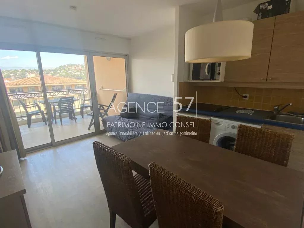 Studio cabine meublé au sein d’une résidence avec piscine se situe à 5 minutes à pieds des plages et à 500 mètres du centre de Cannes la Bocca. Il se compose d’un salon avec cuisine ouverte, d’une chambre cabine, d’une salle de bains et de toilettes séparés. Une terrasse complète ce bien. Disponible immédiatement.