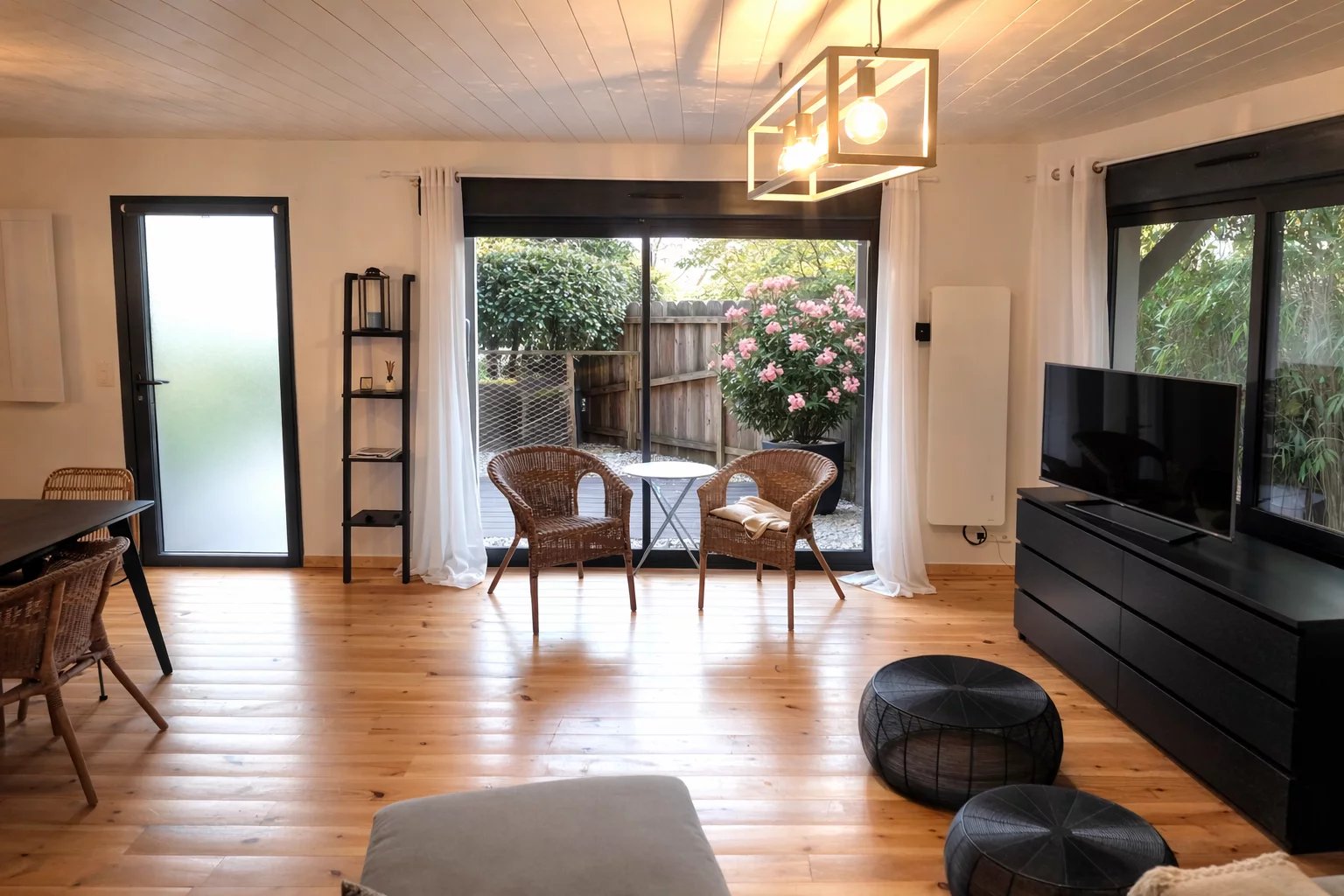 Découvrez ce charmant Studio Cabine, de 44,40 m² (Loi Carrez), niché au rez-de-chaussée d'une petite copropriété récente, composée de seulement trois appartements. Idéalement situé, cet appartement studio cabine vous offre une qualité de vie incomparable ! Vous serez à quelques minutes seulement des plages et de l'animation du quartier prisé du Moulleau. Profitez de la douceur de vivre et de la proximité de ses commerces, restaurants et jetée. Séjour Lumineux avec Cuisine Ouverte (33 m²) : Un espace de vie convivial comprenant un salon séjour et une cuisine ouverte entièrement équipée, une Chambre cabine avec un lit pour deux personnes et une fenêtre, une salle d'eau avec toilettes. Profitez d'une magnifique terrasse en Ipe d'environ 30 m² et d'une cour attenante, en jouissance exclusive. Le stationnement est facilement possible dans la rue. Coup de cœur assuré pour les amateurs de la vie arcachonnaise et de la proximité immédiate de la mer ! Les informations sur les risques auxquels ce bien est exposé sont disponibles sur le site https://errial.georisques.gouv.fr/#/