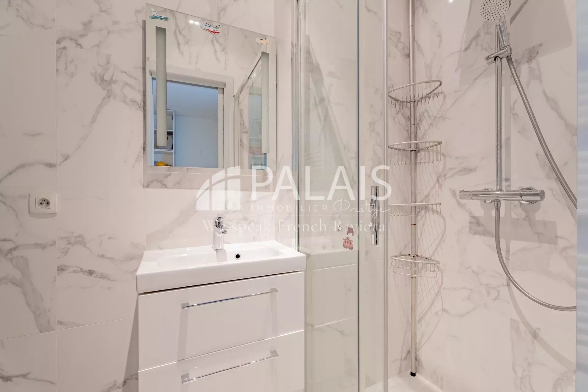 La partie nuit comprend deux chambres, chacune avec sa salle de douche et ses placards intégrés. Un WC invités et de nombreux rangements complètent l’ensemble.