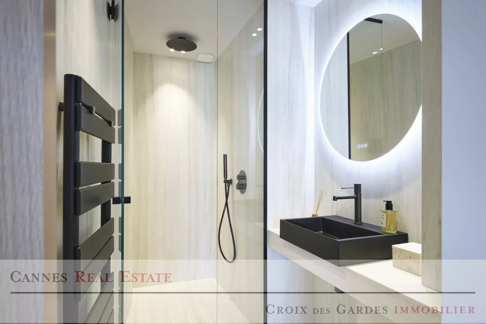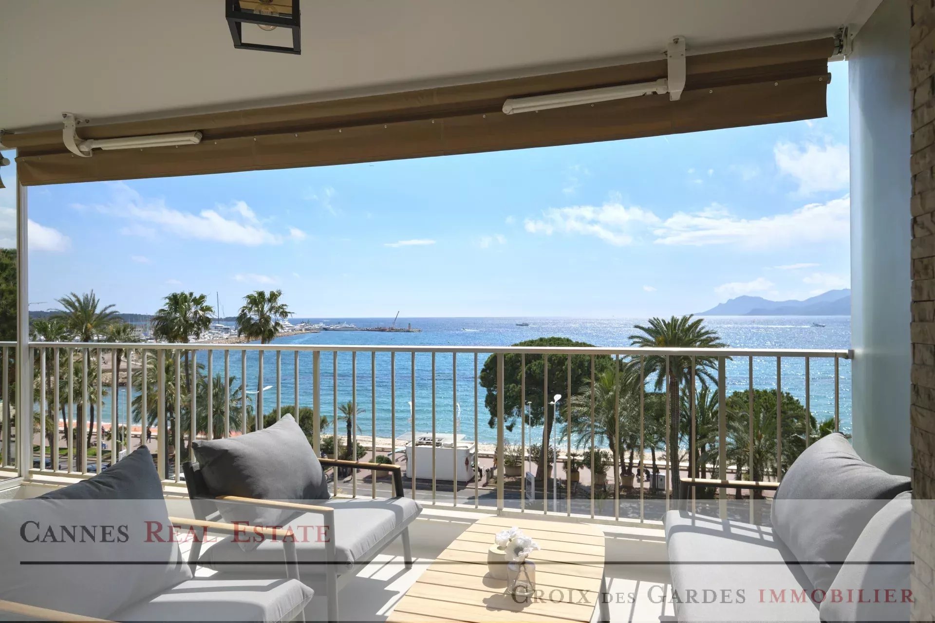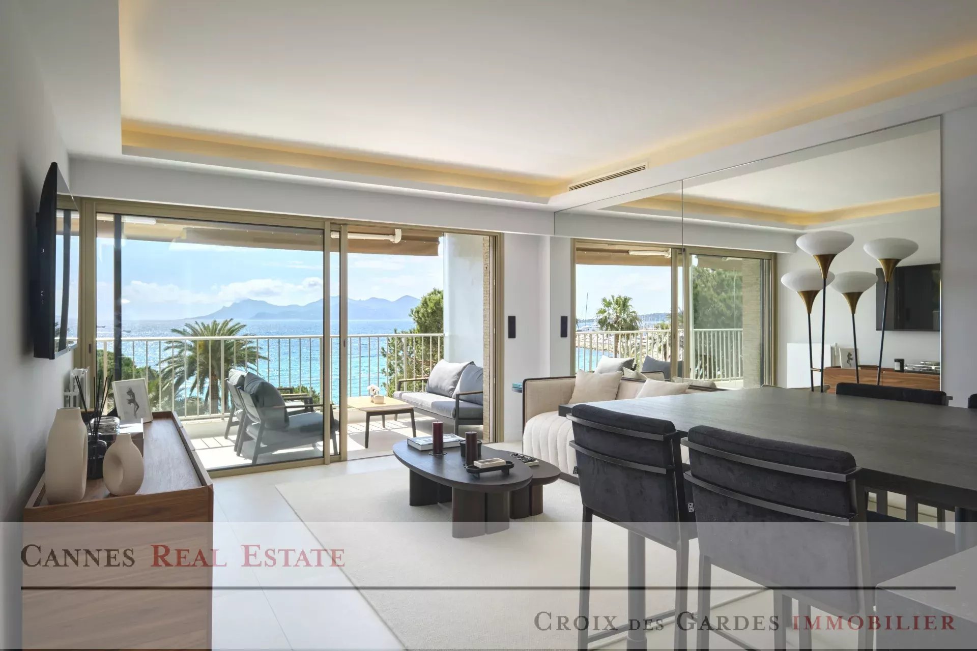 En première ligne Croisette, face à la mer et niché en étage élevé d’une résidence de prestige sécurisée avec gardien, ce sublime appartement traversant d’environ 70 m² a été entièrement rénové avec des matériaux haut de gamme. Il se compose d’un vaste séjour lumineux avec cuisine américaine équipée, ouvrant sur une terrasse d’environ 10 m² offrant une vue imprenable sur la baie de Cannes. Deux chambres élégantes en suite, chacune avec sa salle d’eau, assurent confort et intimité. Une cave complète ce bien d’exception. Possibilité d’acquérir un garage dans la résidence en supplément. Copropriété de 45 lots principaux – Appel de fonds prévisionnel annuel : 3 033 € (incluant gardien, chauffage, eau chaude et froide, fonds Alur).