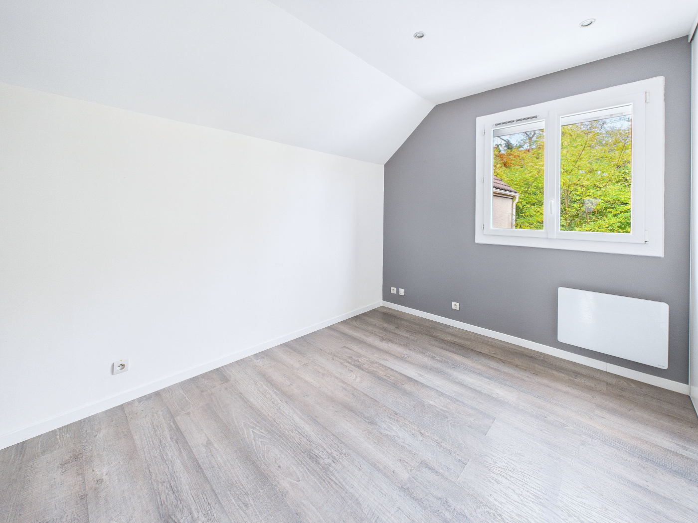 À l'étage, la maison propose trois chambres ainsi qu'une salle de bains. Les combles, accessibles, offrent une pièce supplémentaire pouvant servir de petit espace de rangement, de bureau d'appoint ou de coin loisirs ; on y tient debout principalement au centre, ce qui en fait un volume d'appoint à utiliser selon ses besoins.