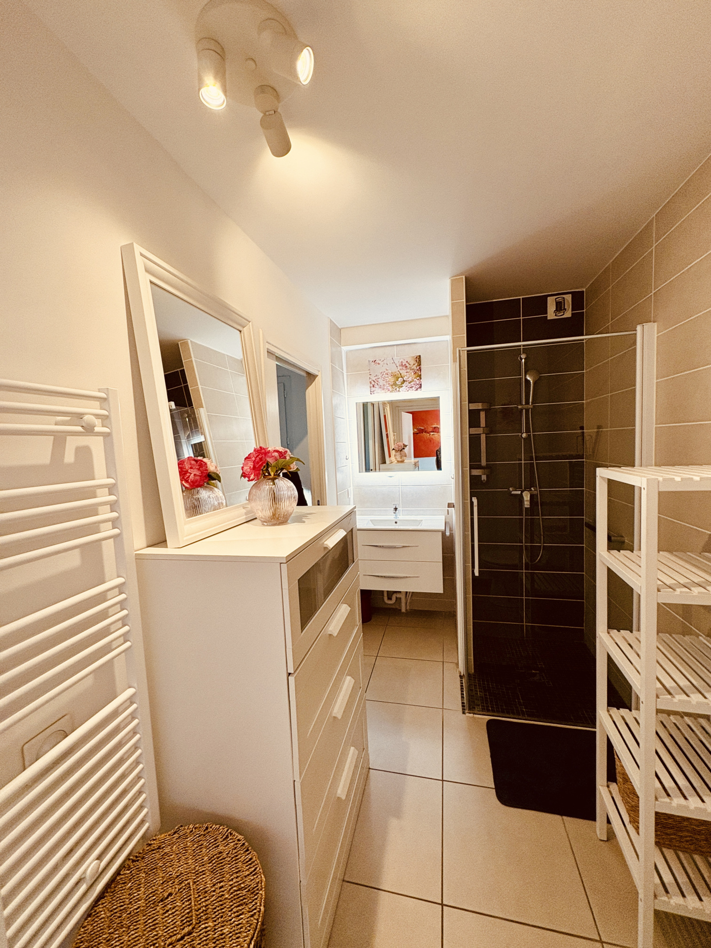 Volumes spacieux, séjour avec cuisine équipée américaine, chambre avec placards, salle d'eau et wc. Un garage situé en rez-de-jardin complète le bien. Climatisation réversible Construction de 2012 - Ascenseur - Coup de coeur assuré !