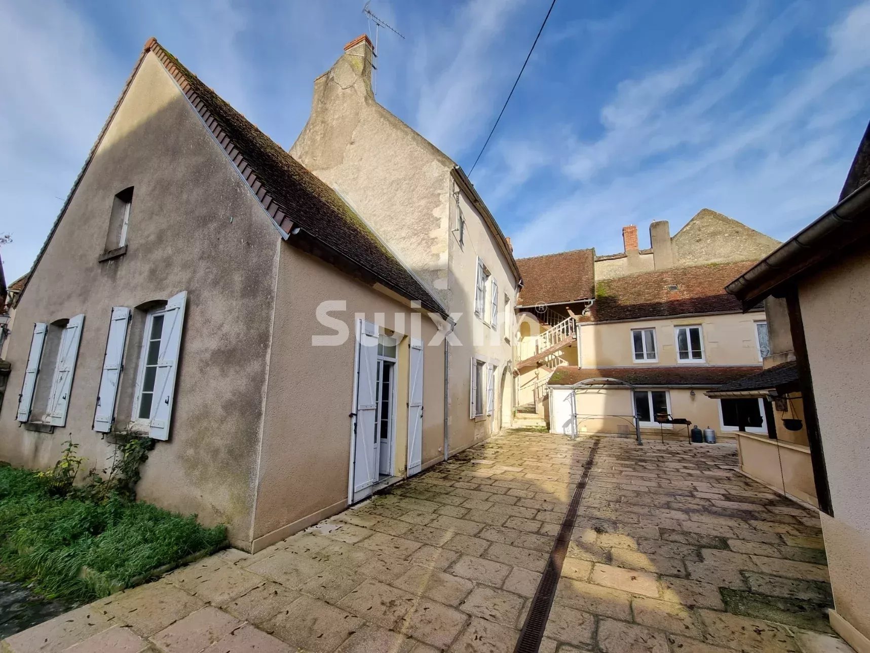Découvrez cet ensemble immobilier de 225m2 habitables avec cour intérieure, jardin et garage, à deux pas des commodités. Cette propriété comprend : Au rez-de-chaussée : 2 entrées, cuisine, spacieux séjour 38m2, magnifique salon avec poutres et cheminée à foyer ouvert, 2 bureaux ou chambres de 11.4 et 25m², pièce avec buanderie/chaufferie, salle d'eau et WC, remise. A l'étage : joli palier, un toilette, 4 chambres (14.6m², 17.3m2, 23m², 12m²), salle d'eau. Au dessus : un grenier entièrement aménageable de 115m². 2 pièces supplémentaires (15.8m², 12.6m²) sont accessibles depuis l'escalier extérieur (couvert), idéales pour des chambres supplémentaires, salles de sport, ateliers d'art... A l'extérieur : Cour dallée, imposante cave de bourgogne de 62m², jardin (idéal pour profiter d'un coin de verdure, potager ou verger.) Garage de 50m² avec plancher au dessus et cave dessous. LES PLUS : chauffage central pompe à Chaleur, tout à l'égout, tout double vitrage, potentiel incroyable. Idéal pour les amateurs de beaux projets!