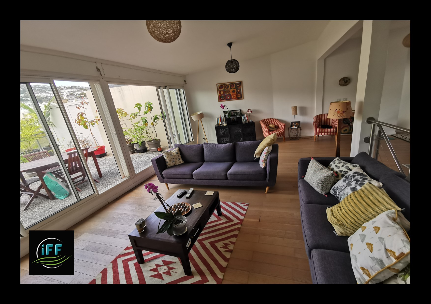 Situé à Saint-Denis, un bel appartement T4 en duplex d'une superficie de 87.21 m2 avec sa terrasse de 61.30 m2 et un balcon de 18.80 m2.