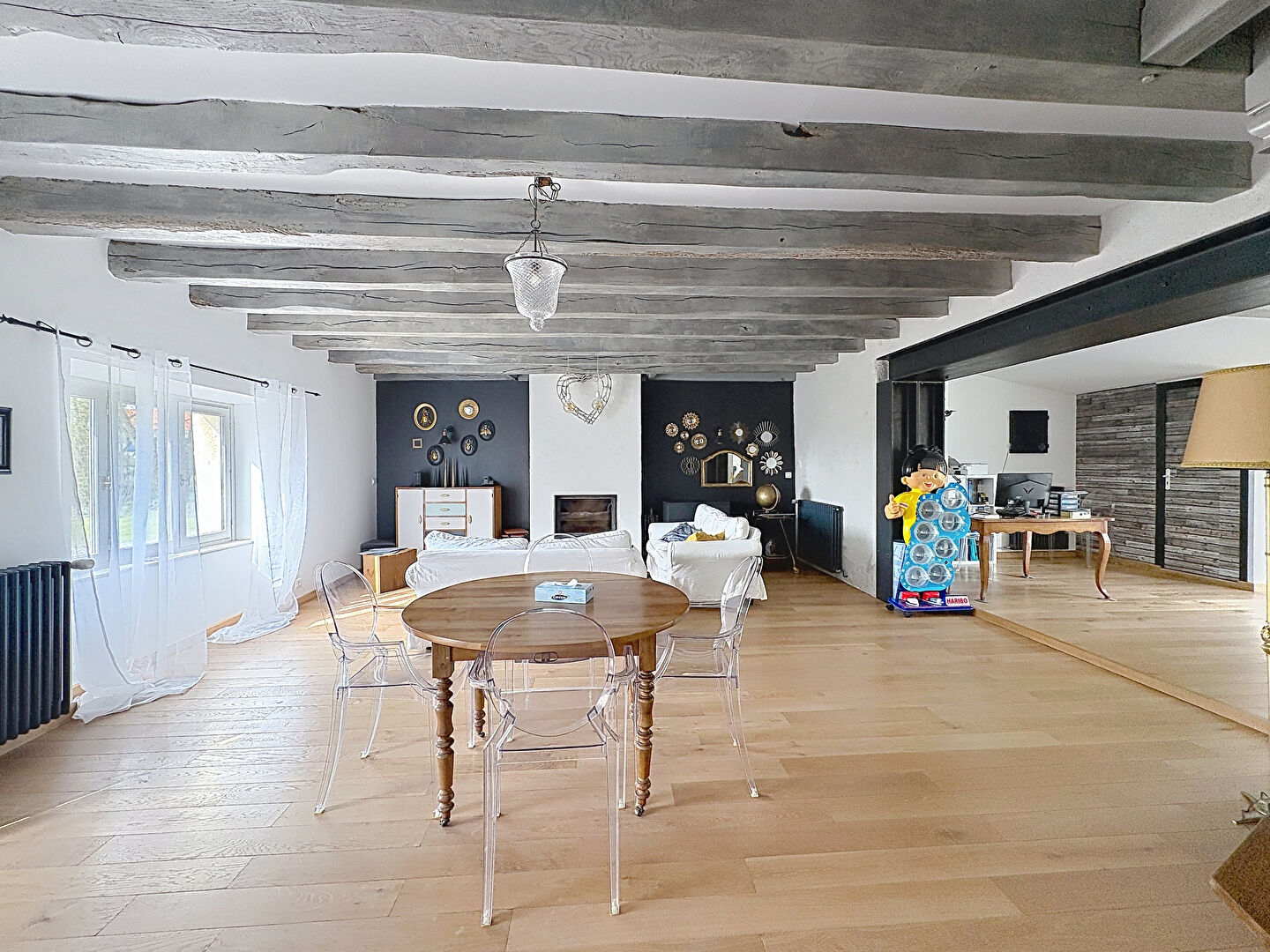 Découvrez cette superbe bâtisse de caractère, où le charme de l'ancien s'harmonise parfaitement avec le confort moderne. Construite en 1850, elle a bénéficié d'une rénovation soignée et d'un entretien irréprochable. Offrant un cadre de vie exceptionnel avec une vue dégagée sur la nature environnante, cette maison développe une surface de 261 m² habitables. Dès l'entrée, un vaste hall dessert le cellier ainsi qu'une cuisine aménagée et entièrement équipée. Dans son prolongement, une magnifique pièce de vie de 68 m², lumineuse et traversante, invite à partager de chaleureux moments en famille. A l'étage, l'escalier distribue deux espaces nuits distincts : Un premier comprenant un palier, deux chambres, une salle d'eau, des toilettes et un dressing, Un second dédié à une suite parentale offrant confort et intimité. La maison est équipée d'un chauffage au gaz avec radiateurs et d'un insert pour des soirées conviviales. Un second logement attenant, communicant mais doté de son propre accès indépendant, offre de multiples possibilités : location saisonnière, accueil de proches, espace de travail? Il se compose d'une pièce de vie avec cuisine aménagée et équipée de 34,5 m², d'une salle d'eau avec WC, ainsi que d'une large mezzanine de 37,5 m² dédiée à l'espace nuit. Le chauffage y est assuré grâce à un poêle à granulés. A l'extérieur, vous profiterez d'un terrain arboré de 2239 m², d'une vaste terrasse de 170 m², d'un double préau pouvant accueillir un camping-car, ainsi qu'un atelier. Située dans un environnement paisible, sans aucun vis-à-vis, cette propriété est une exclusivité de l'agence NESTENN Challans. Une opportunité rare sur le marché : contactez-nous dès aujourd'hui pour organiser une visite ! (4.15 % honoraires TTC à la charge de l'acquéreur.)