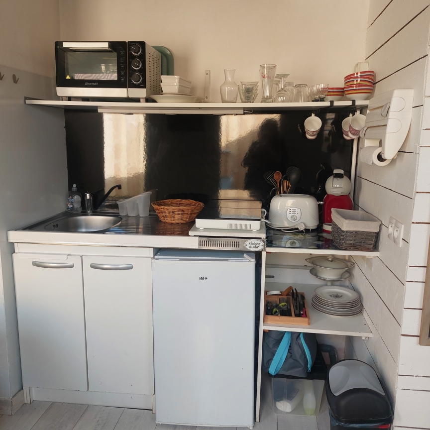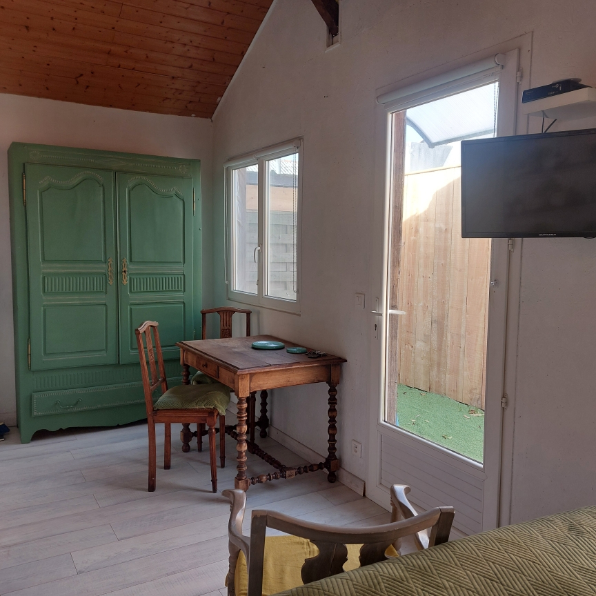 A deux pas du centre BOURG, dans un quartier calme, petit chalet meublé comprenant pièce principale avec coin nuit, kitchenette, SDE WC. Eau et électricité comprises dans les charges. Disponible immédiatement.
