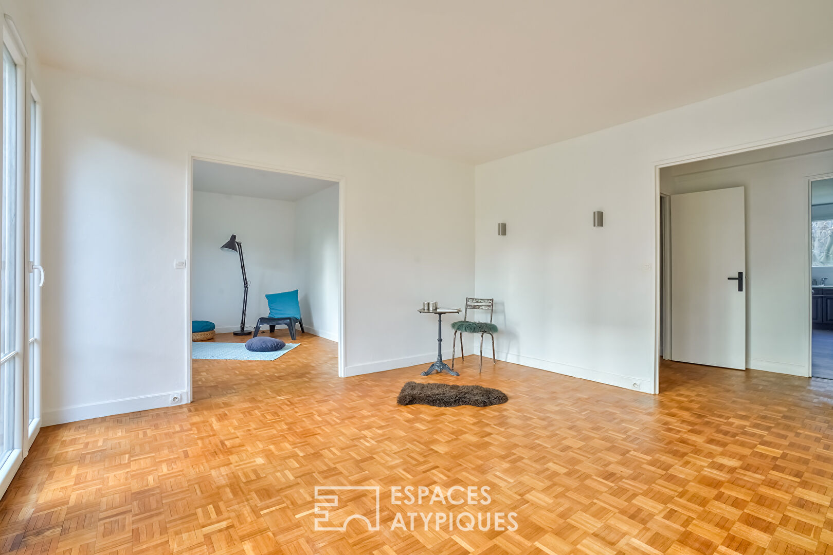 Cet appartement développe une surface de 88 m², situé au calme d'une résidence de qualité sécurisée, avec des espaces verts, à 11 min à pied du Chateau et du RER A. L'entrée dessert à droite, la cuisine aménagée de 12 m² qui profite d'une grande arrière cuisine avec son coin buanderie. A gauche un double séjour de 31 m², au parquet à damier en excellent état, avec balcon. exposition sud/ouest. Les deux chambres de 10,50 m² chacune se partagent une salle de bains. Cet agréable appartement bénéficie d'une belle luminosité, avec une excellente exposition, entouré de verdure et accès à la foret, peut aisément bénéficier d'une chambre supplémentaire grâce à son double séjour. Une cave et un emplacement de parking couvert (avec borne électrique possible) complètent les prestations de ce bien excellement bien situé, quartier forêt. Local à vélo disponible dans la copropriété. CLASSE ENERGIE : D / CLASSE CLIMAT : D. Montant moyen estimé des dépenses annuelles d'énergie pour un usage standard, établi à partir des prix de l'énergie de l'année 2021 : entre 1.220 et 1.720 euros RER A à 11 min à pied, Ecoles primaires et élémentaires à proximité Contact : Sophie 07 61 00 52 78 RSAC Versailles 832 411 144 Copropriété de 411 lots - dont 136 lots habitation. (Pas de procédure en cours). Charges annuelles : 2819 euros. Sophie STANDERA (EI) Agent Commercial - Numéro RSAC : 832411144 - Paris.