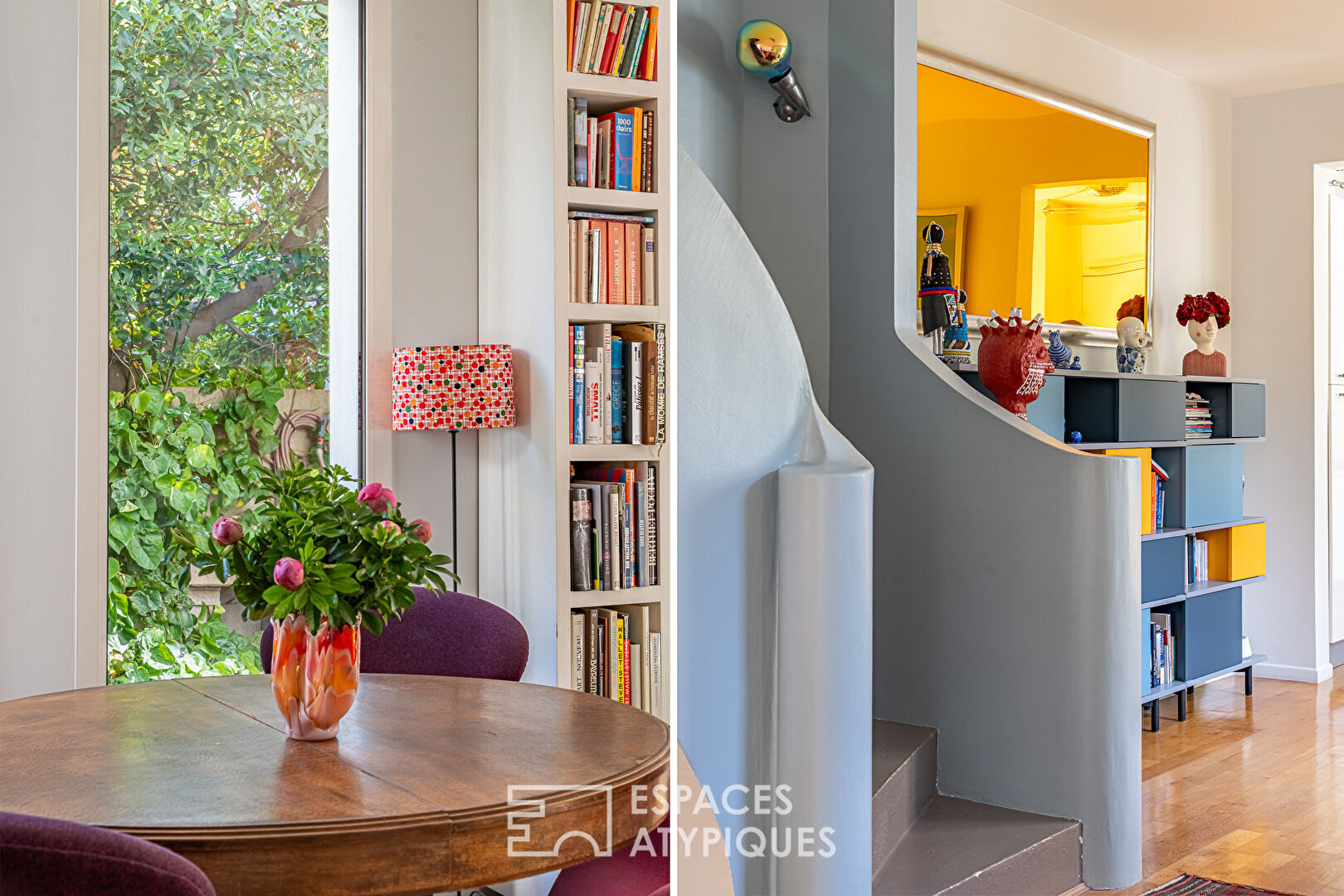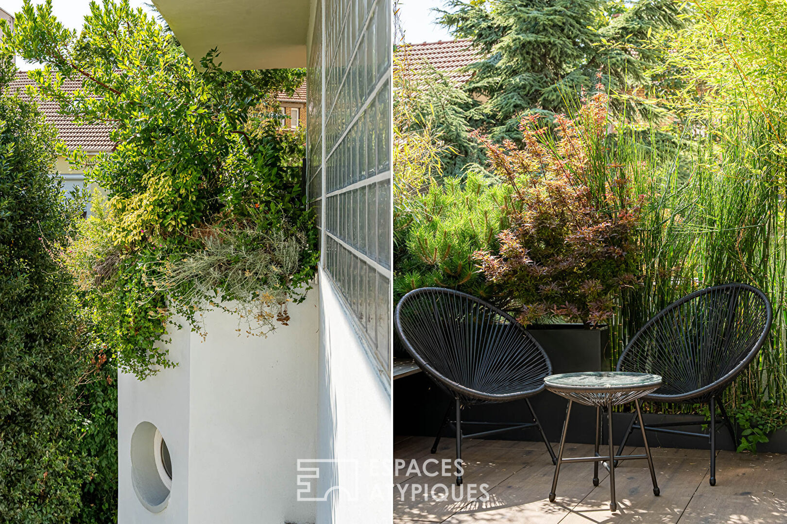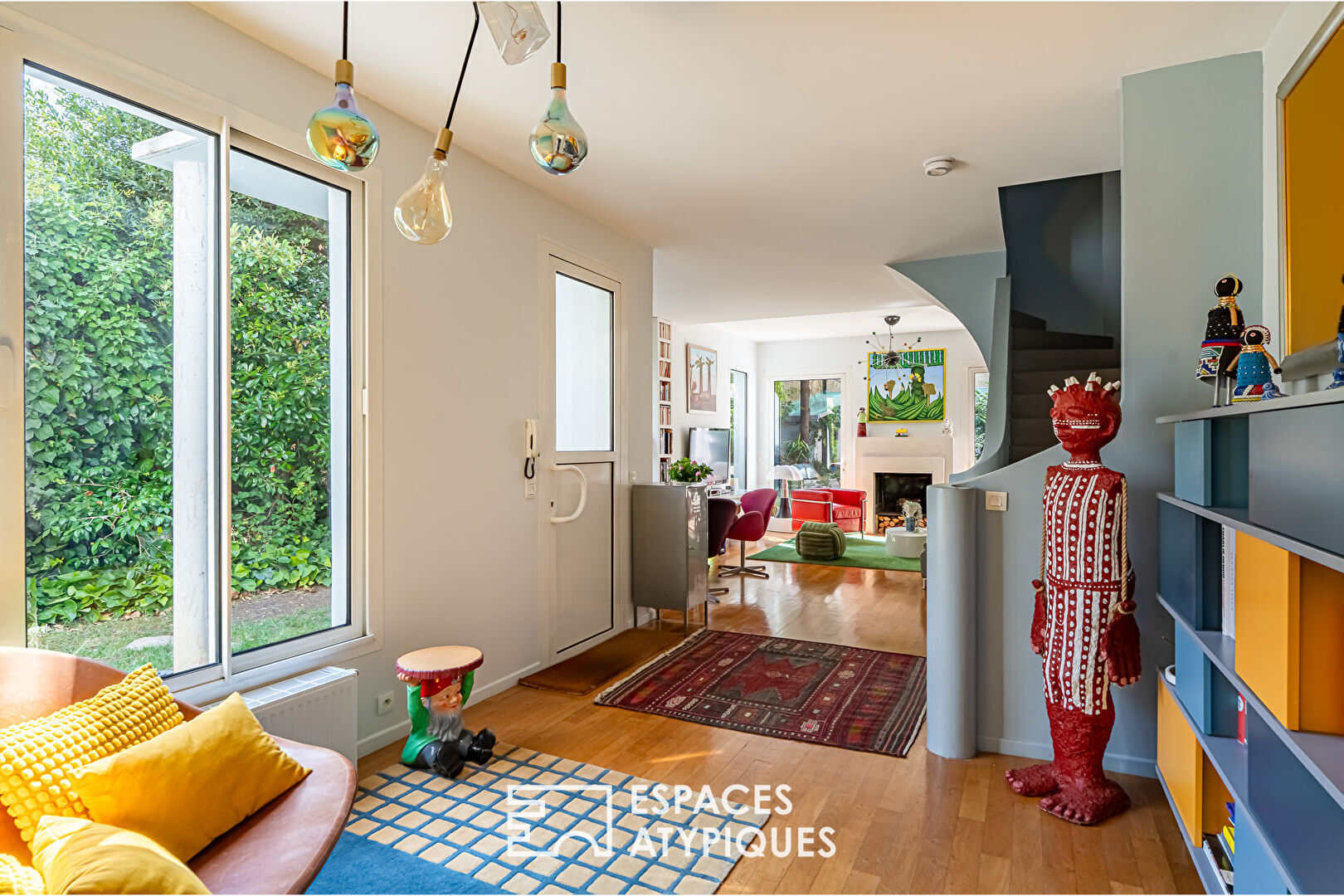 Nichée à l'abri des regards, en fond de copropriété, cette maison d'inspiration moderniste évoque les lignes épurées et l'élan avant-gardiste de l'architecte Robert Mallet-Stevens, figure emblématique de l'architecture du XXe siècle. Lovée dans un écrin de verdure, à deux pas de la gare de Clamart et de toutes les commodités, elle déploie une silhouette aux accents géométriques, jouant avec la lumière et les volumes. Construite en 1995 puis agrandie en 2023 dans le respect de l'architecture d'origine, cette propriété singulière se compose de deux bâtis indépendants : une maison principale de 125 m² et une dépendance de 35 m², le tout organisé autour d'un agréable jardin au calme. Dès l'entrée, le ton est donné. Une cour privative arborée précède une grille en fer forgé, derrière laquelle se révèle une façade aux tons bleutés ponctuée de briques de verre, qui diffusent une lumière douce tout en soulignant les lignes géométriques de l'ensemble. Le rez-de-chaussée accueille une superbe pièce de vie de 38 m² à la belle hauteur sous plafond, baignée de lumière par de larges ouvertures qui cadrent la végétation extérieure comme des oeuvres graphiques. L'espace se structure naturellement en plusieurs ambiances : un salon chaleureux autour de la cheminée contemporaine s'ouvrant sur la terrasse et le jardin, un coin repas convivial, et un espace lecture ou bibliothèque plus intime. Une agréable cuisine indépendante complète ce niveau. Un escalier en courbe, sculptural et aérien, structure l'espace et conduit à l'étage supérieur. Ce dernier comprend une chambre de 13 m² bénéficiant d'une double exposition, une salle de bains, des WC séparés, ainsi qu'une seconde chambre de 12 m2 prolongée d'un espace bureau en enfilade, baigné de lumière naturelle. Au dernier niveau, un vaste atelier, entouré de briques de verre, capte la lumière tout au long de la journée. Conçu comme un véritable atelier d'artiste, ce volume inspire par sa clarté, ses volumes, et son atmosphère hors du temps. Propice à la création, il peut aussi être aménagé en suite parentale ou en quatrième chambre. Il s'ouvre sur une terrasse suspendue, un jardin secret perché à l'abri des regards. En complément, une dépendance indépendante de 35 m² avec chambre et salle d'eau permet d'accueillir confortablement amis ou famille, ou d'imaginer un espace de travail au calme. Une cave complète les prestations de ce bien. Ce lieu rare et confidentiel séduira les amateurs d'architecture expressive et d'espaces lumineux, en quête d'un cadre de vie inspirant, entre nature, art et modernité, à seulement quelques minutes de Paris et à proximité de toutes les commodités. Gare de Clamart à 3 min à pied : ligne N (accès Montparnasse en 7 min) - Métro Ligne 15 à venir. Marché de La Fourche à 3 min à pied. CLASSE ENERGIE : C / CLASSE CLIMAT : C Montant moyen estimé des dépenses annuelles d'énergie pour un usage standard, établi à partir des prix moyens des énergies indexés sur les années 2021, 2022, 2024 : entre 1 760 euros et 2 420 euros. Les informations sur les risques auxquels ce bien est exposé sont disponibles sur le site Géorisques : https://www.georisques.gouv.fr Contact : Philippine - 07 85 61 67 26 - EI - Agent Commercial - RSAC : 853 886 992 - Versailles. Copropriété de 9 lots - dont 9 lots habitation. (Pas de procédure en cours). Charges annuelles : 1968 euros. Philippine CHARLET (EI) Agent Commercial - Numéro RSAC : 853886992 - Versailles.