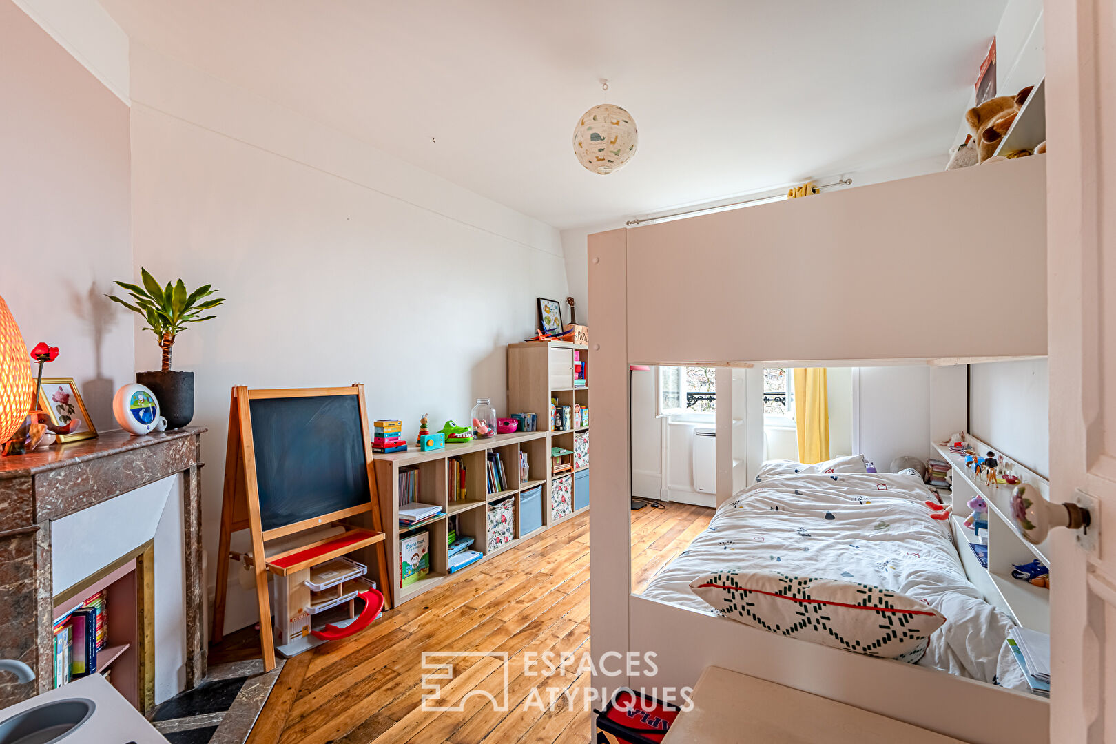 Face au Square Léon Blum, cet appartement familial de 48,21 m² Carrez s'épanouit au cinquième et dernier étage avec ascenseur d'une petite copropriété de 1900, soigneusement entretenue et récemment ravalée. Traversant et baigné de lumière, il profite d'une vue dégagée sur la canopée du square, au coeur d'un secteur prisé pour son atmosphère paisible et sa vie de quartier. L'entrée ouvre sur une pièce de vie chaleureuse où parquet massif, volumes anciens et lumière naturelle composent un ensemble harmonieux. La cuisine ouverte, soulignée par un sol en carreaux de ciment, allie caractère et fonctionnalité. L'espace nuit accueille deux belles chambres d'environ 12 m² bénéficiant d'un calme assuré. Une salle de bains et des WC séparés complètent cet agencement fluide et optimisé. Un jardin partagé vient enrichir la copropriété, offrant aux résidents un espace extérieur calme et convivial. Une cave complète le bien. Le voisinage, riche en commerces, écoles et transports, assure un cadre de vie aussi pratique qu'agréable. Dernier étage, vue dégagée, charme de l'ancien et emplacement privilégié confèrent à cet appartement une identité singulière dans le paysage immobilier boulonnais. Un lieu de caractère, prêt à accueillir un nouveau projet de vie. Métro Pont de Saint-Cloud (ligne 10) : 7 min à pied Métro Marcel Sembat (ligne 9) : 12 min à pied Carte scolaire : Crèche au sein du square Léon Blum Ecole maternelle et élémentaire Silly Collège Bartholdi CLASSE ENERGIE : E / CLASSE CLIMAT : C Montant moyen estimé des dépenses annuelles d'énergie pour un usage standard, établi à partir des prix moyens des énergies indexés sur les années 2021, 2022, 2023 : entre 1 380 euros et 1 900 euros. Les informations sur les risques auxquels ce bien est exposé sont disponibles sur le site Géorisques : https://www.georisques.gouv.fr Contact : Philippine - 07 85 61 67 26 - EI - Agent Commercial - RSAC : 853 886 992 - Versailles. Copropriété de 25 lots - dont 14 lots habitation. (Pas de procédure en cours). Charges annuelles : 2132 euros. Philippine CHARLET (EI) Agent Commercial - Numéro RSAC : 853886992 - Versailles.