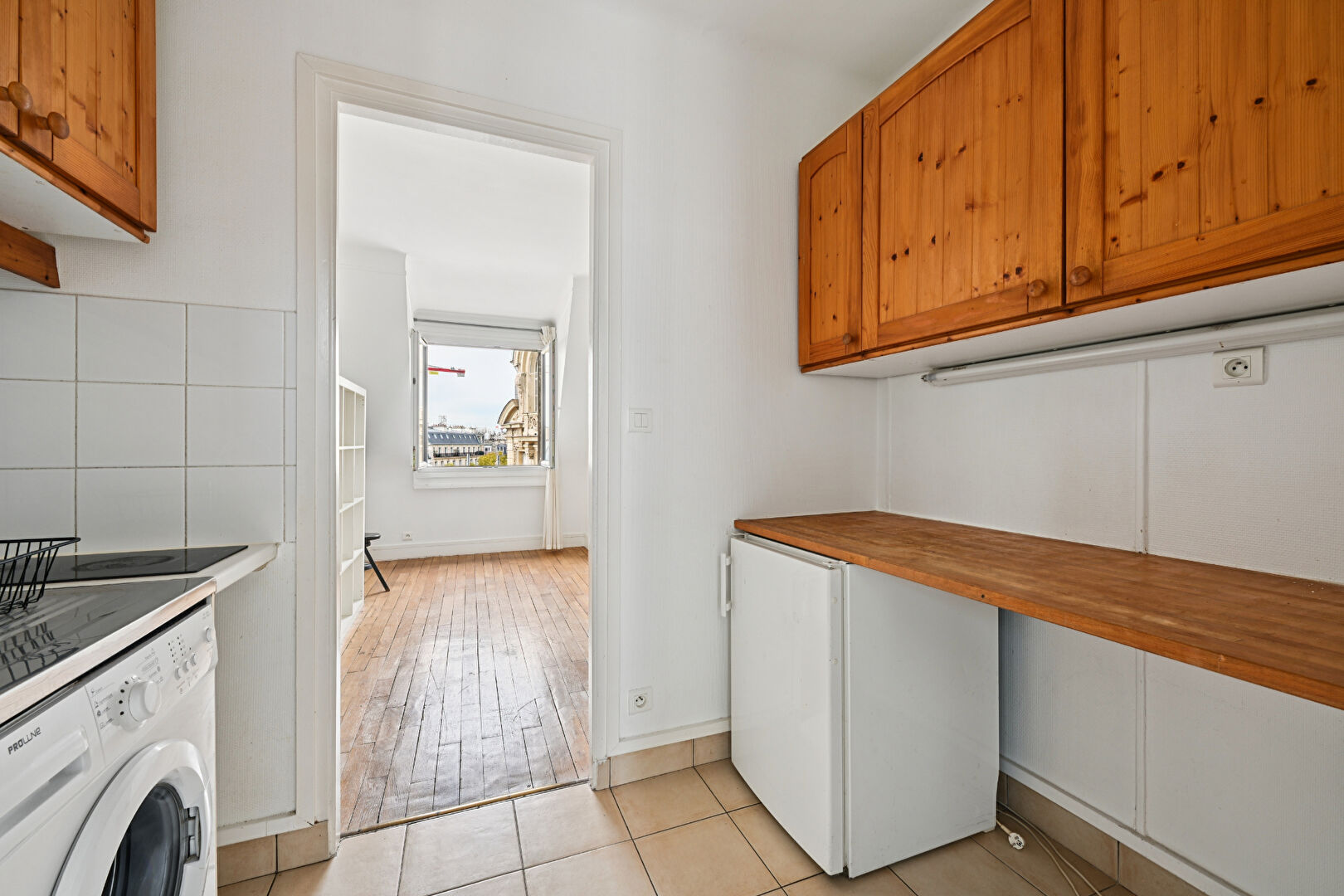 Au coeur du marché de Lévis, à deux pas du métros Villiers (ligne 2 et 3), nous vous proposons ce studio de 17,68 m2 loi Carrez (18,21 m2 au sol). Perché au 7ème et dernier étage par escaliers d'un bel immeuble dont la façade vient tout juste d'être ravalée, ce studio traversant et lumineux, offre une vue dégagée, laissant apercevoir la Tour Eiffel. Il se compose d'une pièce principale, d'une cuisine indépendante et d'une salle d'eau avec WC. Possibilité de le réunir avec une studette mitoyenne en sus du prix, d'une surface de 15,53 m2 loi Carrez (17,15 m2 au sol). Idéal investisseurs. Copropriété de 127 lots - dont 69 lots habitation. (Pas de procédure en cours). Charges annuelles : 592 euros.