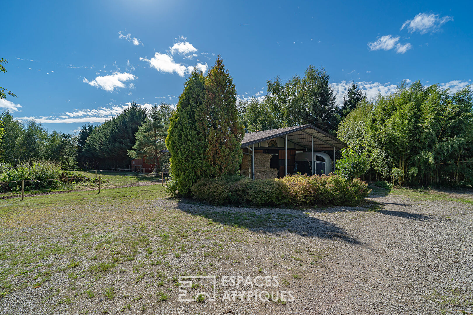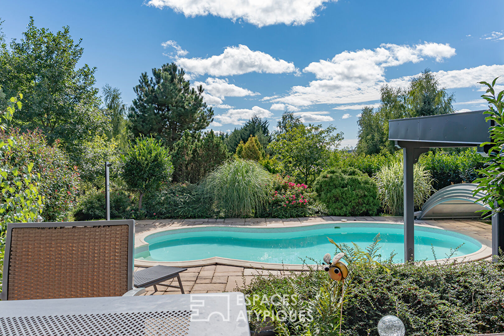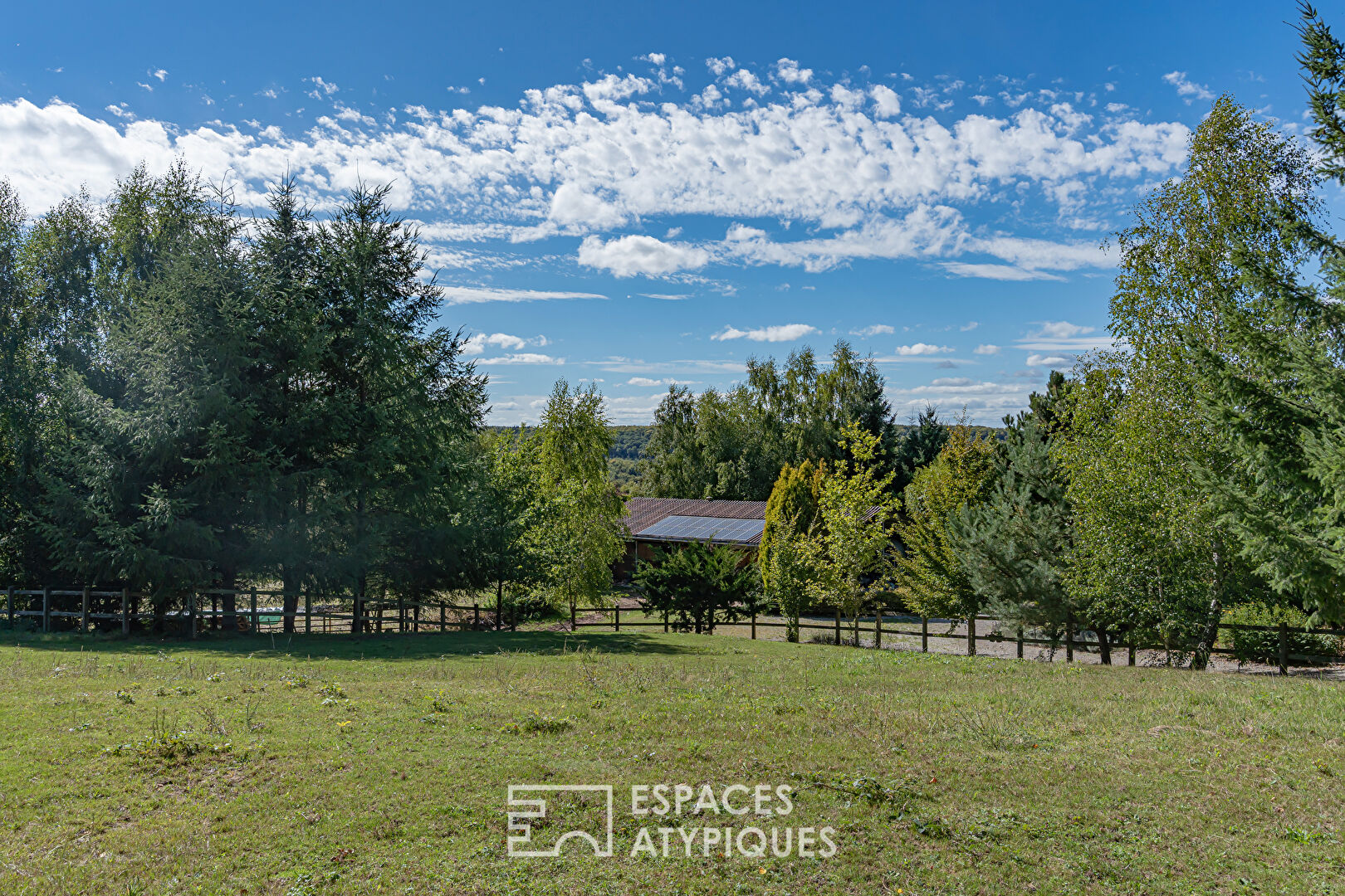 Au coeur d'un cadre naturel préservé, à 17 minutes de Sarrebourg et 40 minutes de Saverne, se dévoile une maison d'architecte de 244 m² sur un terrain paysagé de 1,4 hectare. Cette propriété édifiée en 2004, offre un lieu de vie harmonieux où le confort rencontre l'élégance. Parfaitement adaptée aux amoureux des chevaux, elle séduit par ses espaces généreux, sa piscine couverte et chauffée, sa terrasse et un verger, créant un environnement propice à la sérénité et au ressourcement. Une allée aménagée mène à l'entrée de la maison, de plain-pied. Dès le seuil franchi, le regard est captivé par une vaste pièce de vie de plus de 100 m² baignée de lumière naturelle. L'architecture intérieure se distingue par un plafond cathédrale qui confère une sensation d'ouverture et de grandeur. Le salon-séjour, réchauffé par un poêle à bois, s'ouvre sur une cuisine équipée de qualité allemande. Cet espace de réception convivial se prolonge naturellement vers la terrasse et la piscine. Un bureau, situé sur une mezzanine suspendue, offre une vue imprenable sur la verdure environnante. La propriété comprend trois chambres, dont une suite parentale complète avec dressing, salle de bain et balcon privé. Une chambre dispose de sa propre salle d'eau, et une troisième chambre est également accompagnée de sa salle d'eau dédiée. Pour parfaire la fonctionnalité de cette habitation, on y trouve également une buanderie, une cave et un double garage accessible depuis l'entrée. L'extérieur de la propriété est un véritable havre de paix et constitue un atout unique. Le domaine est un paradis pour les amateurs d'équitation, avec des installations équestres de marque Rinco Carlo, comprenant une écurie, une carrière et un rond de longe. Le toit de l'écurie est équipé d'une installation photovoltaïque de 17kW générant un revenu annuel de 1600 euros. La proximité de Sarrebourg et Saverne offre un accès rapide à toutes les commodités, écoles et commerces, tout en bénéficiant de la quiétude d'une vie en lisière de forêt. Cette maison d'architecte se positionne comme un bien rare et singulier sur le marché immobilier. Ses volumes, la qualité de ses matériaux, son architecture contemporaine et ses installations équestres en font une propriété coup de coeur pour des acquéreurs à la recherche d'un lieu de vie alliant confort, modernité et respect de la nature. Double garage 4 places de stationnement Cave Commerces à 5 min en voiture Gare à 15 min en voiture Ecole maternelle à 5 min en voiture Ecole primaire à 14 min en voiture Collège à 12 min en voiture CLASSE ENERGIE : C / CLASSE CLIMAT : C Montant moyen estimé des dépenses annuelles d'énergie pour un usage standard, établi à partir des prix moyens des énergies indexés sur les années 2021, 2022, 2023 (abonnements compris) : entre 2780 euros et 3820 euros Contact : Kévin 06.95.36.00.99