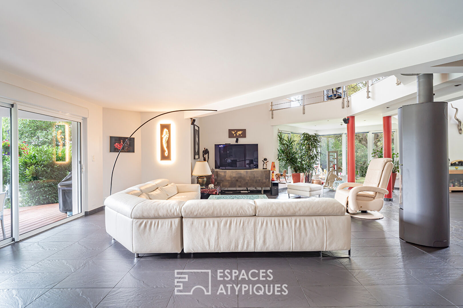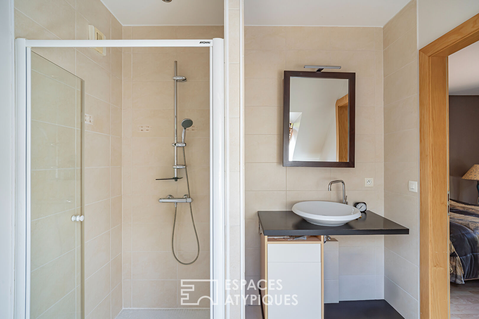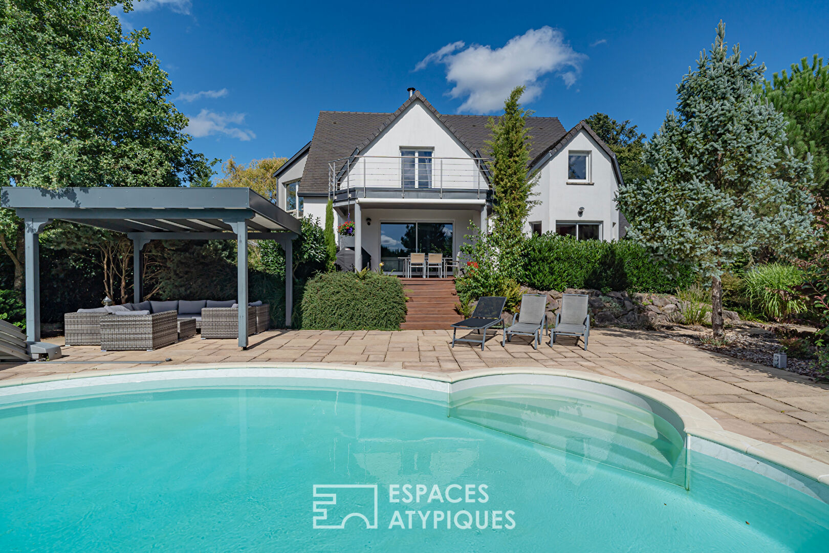 Au coeur d'un cadre naturel préservé, à 17 minutes de Sarrebourg et 40 minutes de Saverne, se dévoile une maison d'architecte de 244 m² sur un terrain paysagé de 1,4 hectare. Cette propriété édifiée en 2004, offre un lieu de vie harmonieux où le confort rencontre l'élégance. Parfaitement adaptée aux amoureux des chevaux, elle séduit par ses espaces généreux, sa piscine couverte et chauffée, sa terrasse et un verger, créant un environnement propice à la sérénité et au ressourcement. Une allée aménagée mène à l'entrée de la maison, de plain-pied. Dès le seuil franchi, le regard est captivé par une vaste pièce de vie de plus de 100 m² baignée de lumière naturelle. L'architecture intérieure se distingue par un plafond cathédrale qui confère une sensation d'ouverture et de grandeur. Le salon-séjour, réchauffé par un poêle à bois, s'ouvre sur une cuisine équipée de qualité allemande. Cet espace de réception convivial se prolonge naturellement vers la terrasse et la piscine. Un bureau, situé sur une mezzanine suspendue, offre une vue imprenable sur la verdure environnante. La propriété comprend trois chambres, dont une suite parentale complète avec dressing, salle de bain et balcon privé. Une chambre dispose de sa propre salle d'eau, et une troisième chambre est également accompagnée de sa salle d'eau dédiée. Pour parfaire la fonctionnalité de cette habitation, on y trouve également une buanderie, une cave et un double garage accessible depuis l'entrée. L'extérieur de la propriété est un véritable havre de paix et constitue un atout unique. Le domaine est un paradis pour les amateurs d'équitation, avec des installations équestres de marque Rinco Carlo, comprenant une écurie, une carrière et un rond de longe. Le toit de l'écurie est équipé d'une installation photovoltaïque de 17kW générant un revenu annuel de 1600 euros. La proximité de Sarrebourg et Saverne offre un accès rapide à toutes les commodités, écoles et commerces, tout en bénéficiant de la quiétude d'une vie en lisière de forêt. Cette maison d'architecte se positionne comme un bien rare et singulier sur le marché immobilier. Ses volumes, la qualité de ses matériaux, son architecture contemporaine et ses installations équestres en font une propriété coup de coeur pour des acquéreurs à la recherche d'un lieu de vie alliant confort, modernité et respect de la nature. Double garage 4 places de stationnement Cave Commerces à 5 min en voiture Gare à 15 min en voiture Ecole maternelle à 5 min en voiture Ecole primaire à 14 min en voiture Collège à 12 min en voiture CLASSE ENERGIE : C / CLASSE CLIMAT : C Montant moyen estimé des dépenses annuelles d'énergie pour un usage standard, établi à partir des prix moyens des énergies indexés sur les années 2021, 2022, 2023 (abonnements compris) : entre 2780 euros et 3820 euros Contact : Kévin 06.95.36.00.99