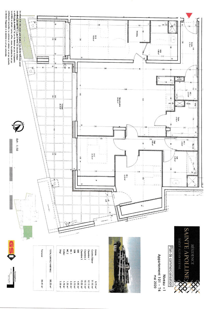 COUP DE COEUUR ASSURÉ ! T3?4 de standing avec vue panoramique Saint-Alban-Leysse Dans un environnement calme et verdoyant, sur les hauteurs prisées de l'agglomération chambérienne, découvrez ce superbe appartement T3-4 de 99,69 m² situé au sein de la résidence contemporaine Sainte Apolline (2021), intimiste et élégante (23 logements, ascenseur, RT 2012). Le vrai luxe La vue. Une terrasse exceptionnelle de 36 m² vous offre un panorama à couper le souffle sur le bassin chambérien et les massifs environnants : Belledonne, Granier, Épine. Un intérieur spacieux et raffiné Pièce de vie lumineuse de plus de 41 m², ouverte sur la terrasse Cuisine SIGNA haut de gamme entièrement équipée Deux chambres, dont une suite parentale avec dressing et salle d'eau Salle de bains avec baignoire, 2 WC, cellier / arrière-cuisine Prestations premium et confort moderne Prestations sur-mesure et équipements de qualité (plus de 33 000 euros d'améliorations) : électroménager haut de gamme, adoucisseur d'eau, finitions soignées, rangements optimisés. Un cadre de vie privilégié ? Résidence avec court de tennis, espaces verts et local vélos Accès rapide aux commodités Chauffage gaz collectif inclus dans les charges Annexes incluses Cave Parking couvert privatif Grand garage de 22 m² Copropriété de 63 lots - dont 22 lots habitation. Charges annuelles : 2411 euros.