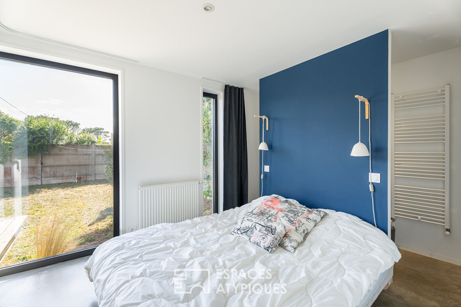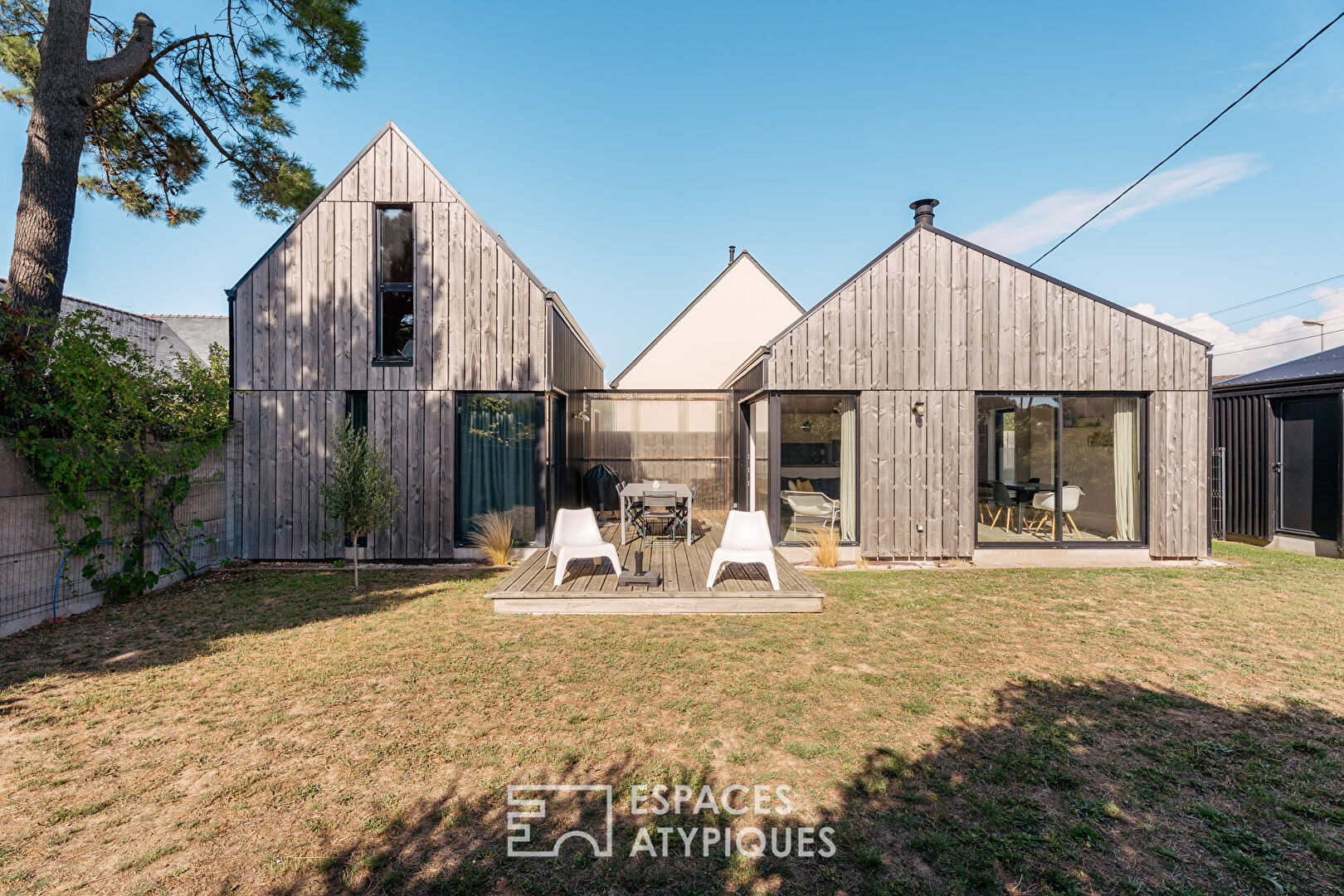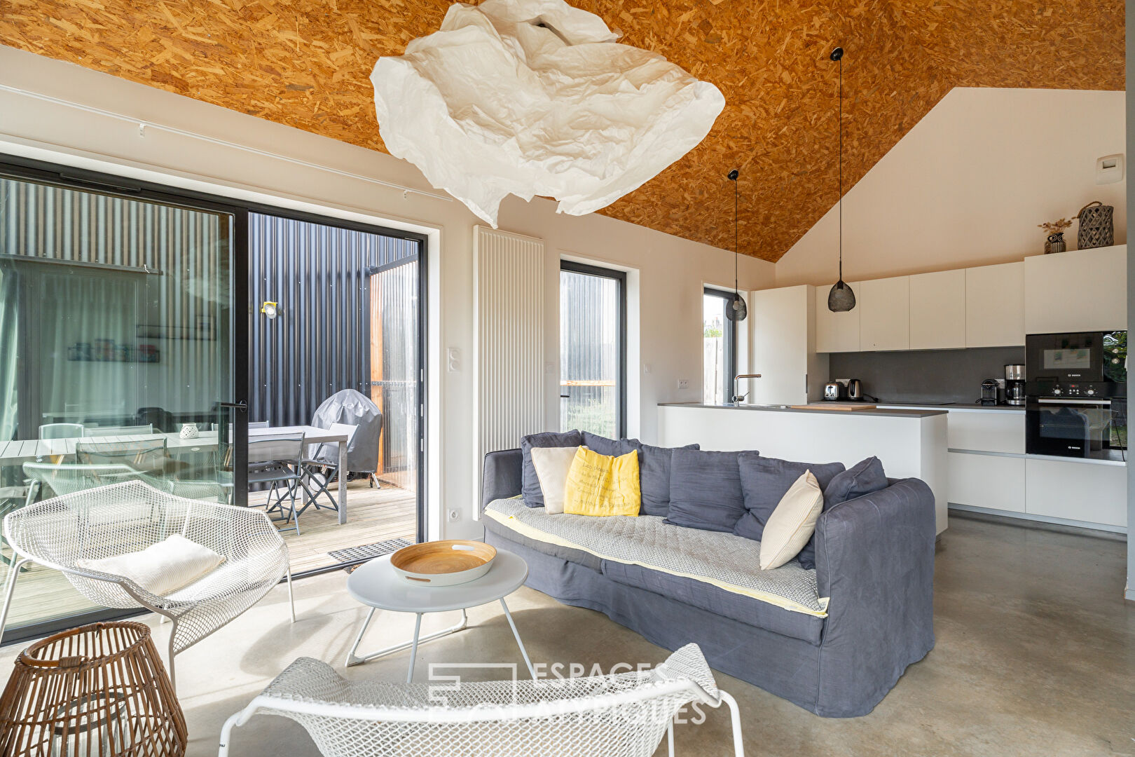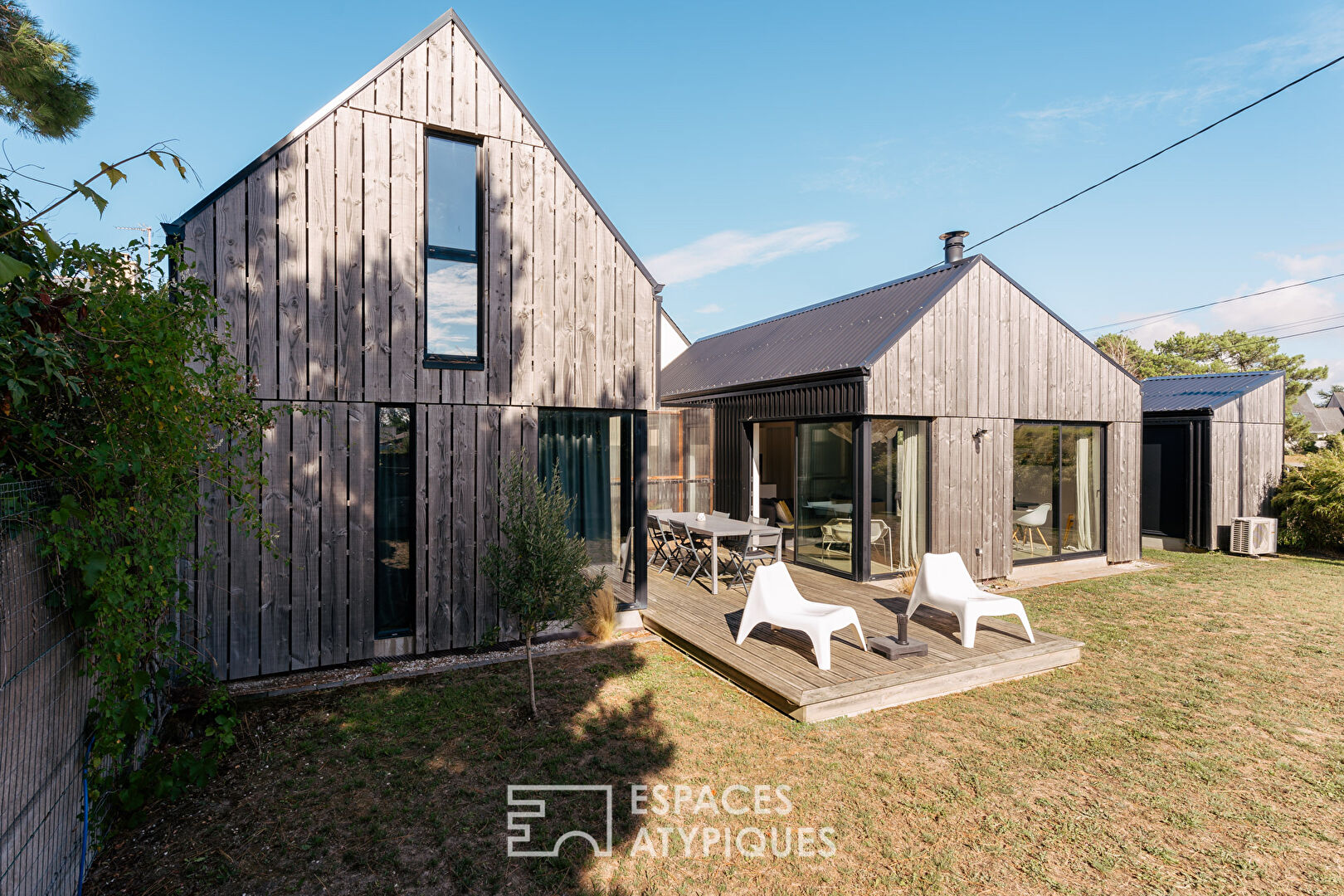 EXCLUSIVITÉ ESPACES ATYPIQUES A seulement cinq minutes à pied des plages dorées sur les hauteurs de PÉNESTIN et des sentiers côtiers, cette maison d'architecte en ossature bois d'environ 90 m² surface au sol allie charme et modernité. Nichée au calme, elle offre une accessibilité à pied ou à vélo des commerces. Cette habitation lumineuse évoque l'esprit des cabanes de surfeurs, un véritable havre de paix propice à la déconnexion. Dès l'entrée, vous serez transportés par l'ambiance chaleureuse. Le rez-de-chaussée s'ouvre sur un séjour lumineux, où la salle à manger et la cuisine équipée se rejoignent harmonieusement, créant un espace convivial pour partager de précieux moments. Une buanderie et un WC complètent ce niveau. Un passage vous mène vers deux chambres, chacune dotée de sa propre salle d'eau, dont l'une disposant également d'un WC pour plus de confort. A l'étage, les combles proposent un espace nuit supplémentaire Bercés par le doux murmure des vagues, le jardin et sa terrasse plein sud invitent à la sérénité Un abri de jardin permet également de stocker vélos, matériel de plage ou autres. Un stationnement extérieur privé fait également partie intégrante de la propriété. CLASSE ENERGIE : A / CLASSE CLIMAT : A Montant moyen estimé des dépenses annuelles d'énergie pour un usage standard, établi à partir des prix moyens des énergies indexés sur les années 2021, 2022, 2023 : entre 430 euros et 620 euros/an Les informations sur les risques auxquels ce bien est exposé sont disponibles sur le site géorisques : www.georisques.gouv.fr Denise Muteau RSAC Vannes 503 556 045 Contact : 06 12 71 52 43 Denise Muteau (EI) Agent Commercial - Numéro RSAC : 503 556 045 - VANNES.