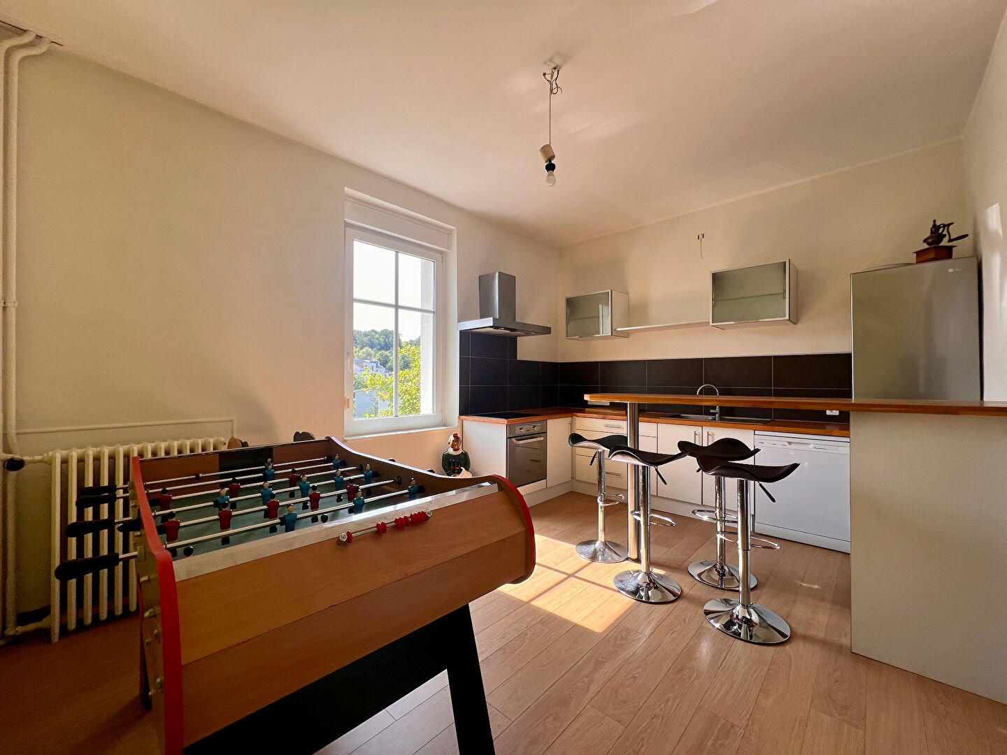 L'agence Stéphane Plaza Immobilier, vous propose un très bel appartement atypique et unique dans une ancienne bâtisse de 1903 à seulement 2 pas du centre-ville de SAINT-AVOLD. "En exclusivité, ce bien est proposé aux enchères immobilières en ligne*. Prix de départ 110 000 euros .Les honoraires, à la charge du vendeur seront calculés à l'issue de la vente interactive. L'APPARTEMENT : Dès l'entrée vous serez impressionné par les beaux volumes, une cuisine lumineuse entièrement équipée, une salle à manger spacieuse pour recevoir vos convives, un salon avec accès terrasse et sa vue imprenable sur la basilique. Une grande salle de bain avec baignoire et douche et bien sur la double vasques. WC indépendant. A l'étage, 2 chambres de plus de 15m2 chacune et une troisième avec son coin dressing. Une salle d'eau qui comprend une buanderie, un espace rangement et un WC. Un espace jardin privé est accessible par des escaliers. Une cave et un petit garage font aussi partis de la vente Les points forts : - A 2 pas du Centre - Toiture refaite en 2022 et isolée en laine de verre - Superbe terrasse de 25m2 - Beaux volumes et sans vis à vis La participation à cette enchère est soumise à agrément préalable. Toutes les offres seront transmises au vendeur, lequel restera libre dans la sélection de l'offre à laquelle il entend donner suite. Une offre en ligne ne constitue pas une offre ferme et définitive au sens de l'article 1114 du Code Civil, mais une simple intention d'achat. Le prix affiché correspond à un prix de première offre possible honoraires de négociation inclus." https://www.winimmoencheres.com/enchere/appartement-142-m²-en-duplex-3-chambres/?agence=5049 Pour visionner ce bien en vidéo, copier/coller ce lien dans la barre de recherche : https://youtu.be/sMPdlUONKvw, si le lien n'apparaît pas, rendez-vous sur notre chaîne YouTube Stéphane Plaza Immobilier Saint-Avold. Copropriété de 6 lots - dont 2 lots habitation. (Pas de procédure en cours). Charges annuelles : 5400 euros.