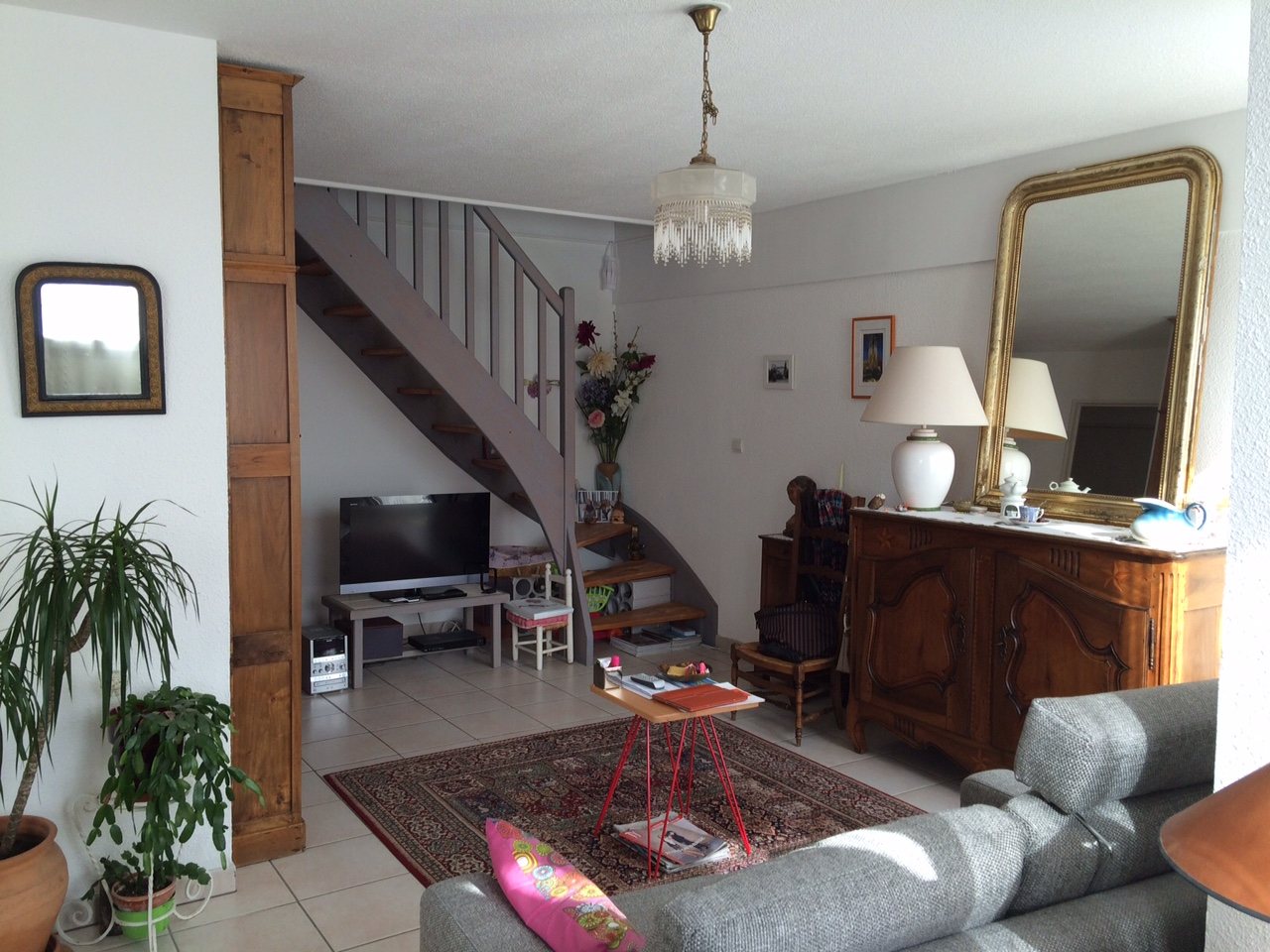 Toulouse, rue Raymond Corraze, dans résidence sécurisée, à deux pas de la Place de L'Ormeau, appartement duplex en dernier étage de 75.73 m² composé d'une entrée avec rangement, grande et belle pièce à vivre avec cuisine ouverte et aménagée donnant sur une terrasse lumineuse. A l'étage, deux chambres, un dressing. Salle de bain, Salle de douche et toilettes séparés. 2 places de stationnement. Libre immédiatement. Loyer charges comprises: 854 euros Dépôt de garantie: 784 euros Honoraire TTC à la charge du locataire 917 euros dont 211 euros d'honoraires d'état des lieux.