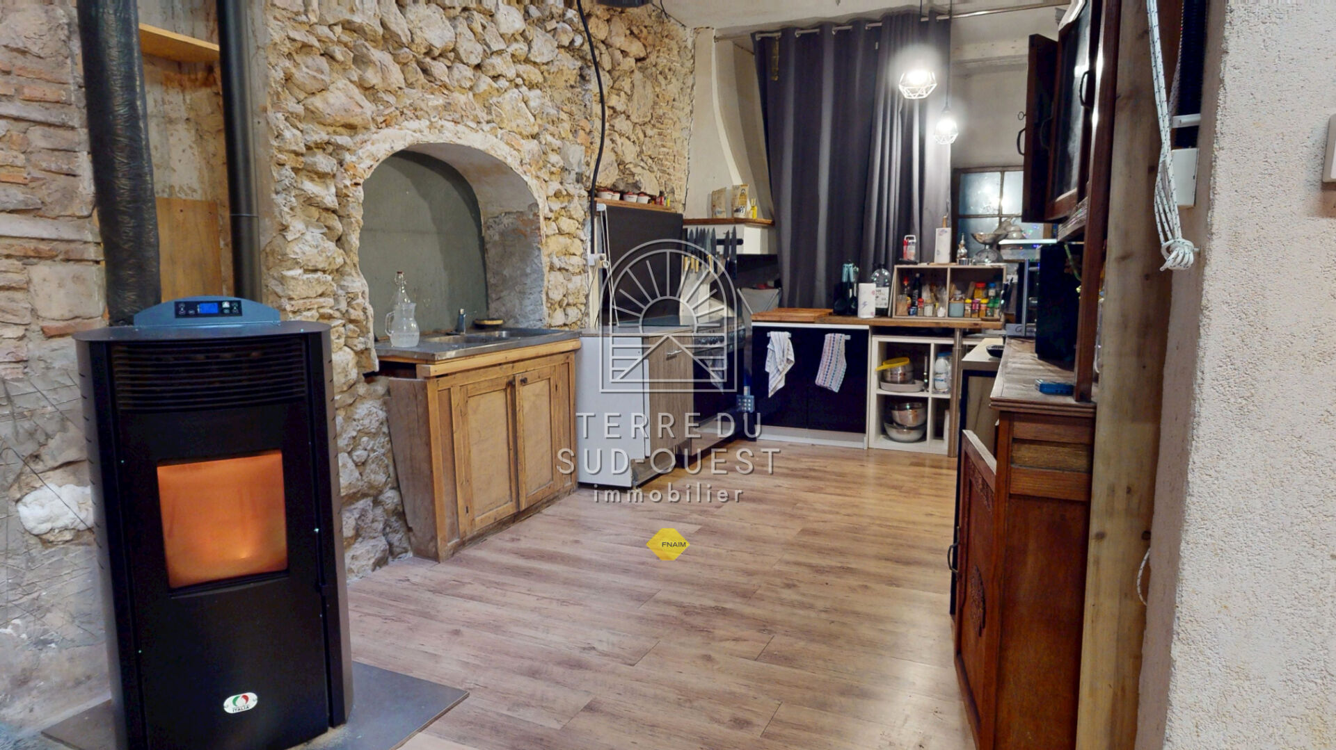 TERRE DU SUD OUEST Immobilier vous propose une maison de bourg avec espace extérieur de 200 m² sans vis à vis et disposant d'un double accès permettant d'entrer côté rue ou côté jardin. D''une surface de 210 m² sur 2 niveaux, cette ancienne boulangerie du début du 20ème saura vous séduire avec son four à pain centenaire, ses pierres apparentes, sont escalier avec puits de jour et ses parquets naturellement patinés. Elle dispose aujourd'hui de 5 chambres, une cuisine, un bel espace de vie, une salle de bain, 2 wc et l'ancien local commercial. Quelques travaux seront à prévoir soit pour la sublimer. Aurélie LAMAGNERE (EI) Agent Commercial - Numéro RSAC : 834 366 643 - Pau.