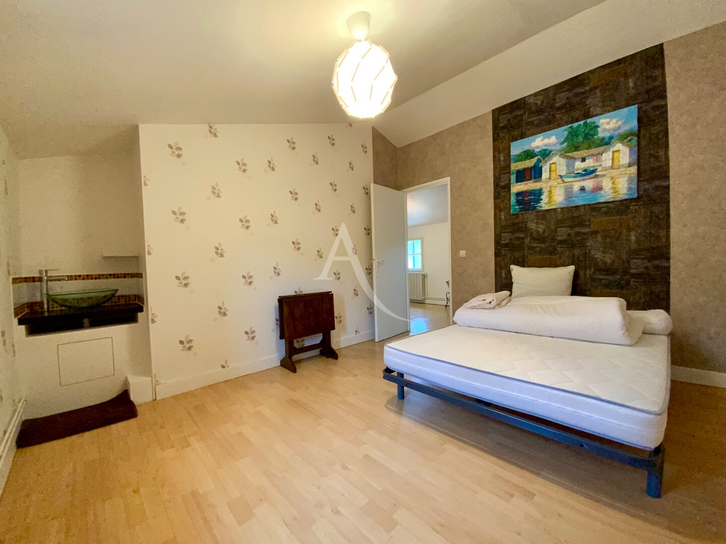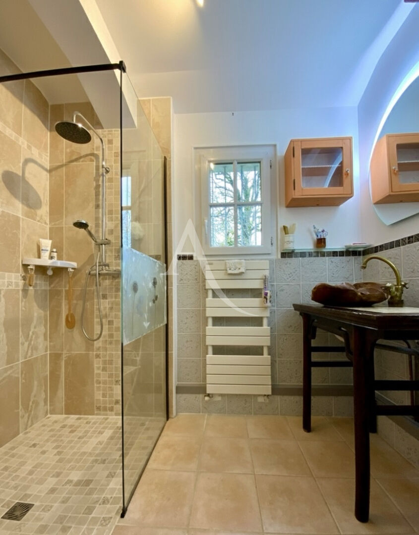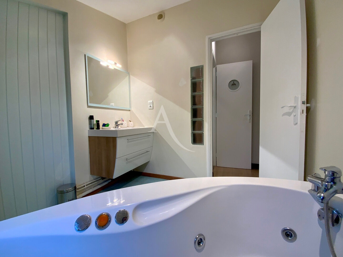 Cette maison en centre-ville de Jonzac profite d'une situation privilégiée, à deux pas des commodités essentielles (commerces, écoles, gare). Offrant la possibilité d'une vie de plain-pied et disposant de beaux volumes, la résidence principale est composée de quatre chambres et d'un bureau. Chauffage par pompe à chaleur air/eau complété par un poêle à bois. A l'extérieur, vous profiterez d'un jardin très agréable. Stationnement couvert et sécurisé (garage) et appentis attenant. Autre atout majeur de ce bien : le logement curiste séparé, bénéficiant de son entrée et de son jardin privatifs, idéal pour une activité locative. (5.00 % honoraires TTC à la charge de l'acquéreur.) Gautier PORTEJOIE (EI) Agent Commercial - Numéro RSAC : 879390714 - SAINTES.