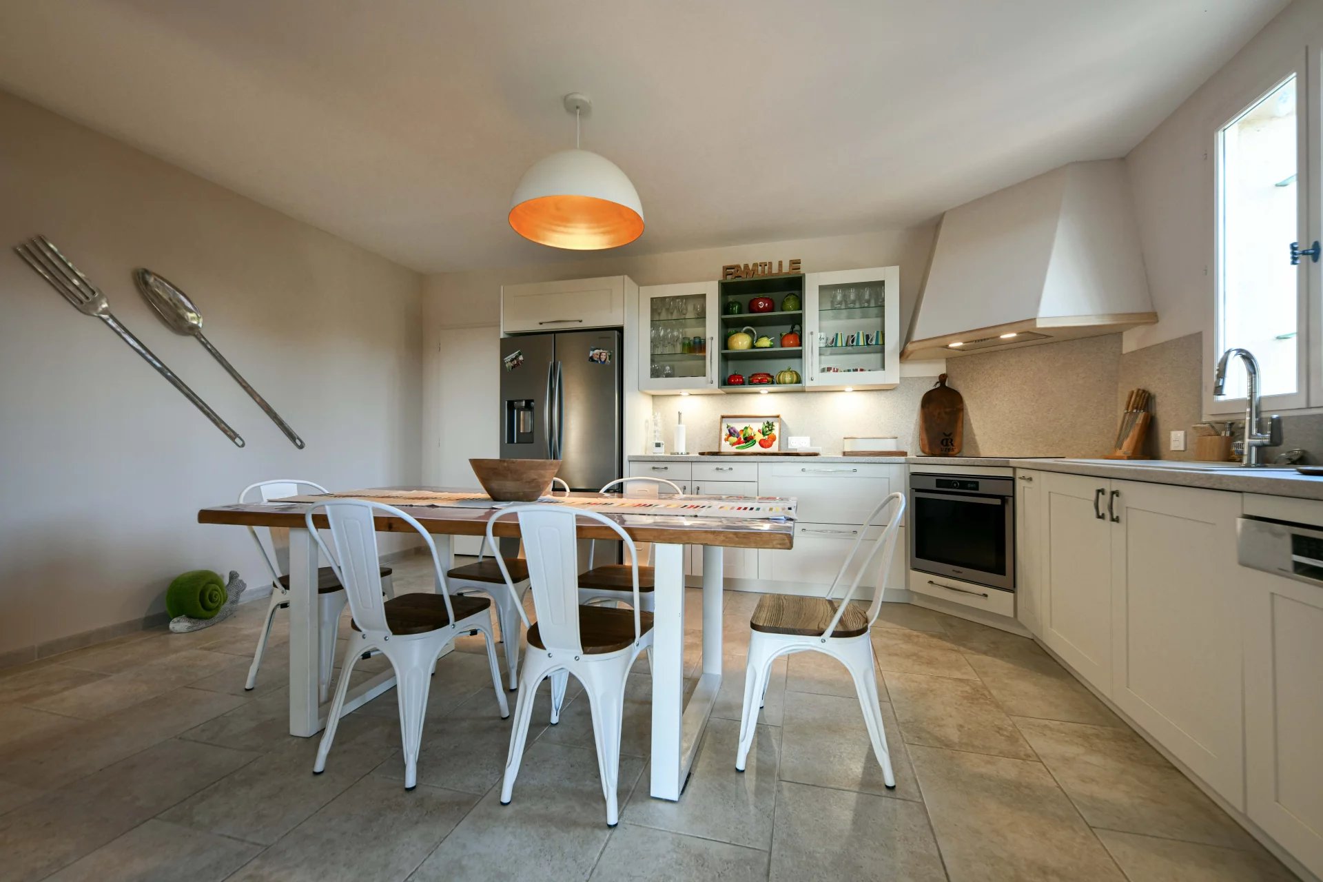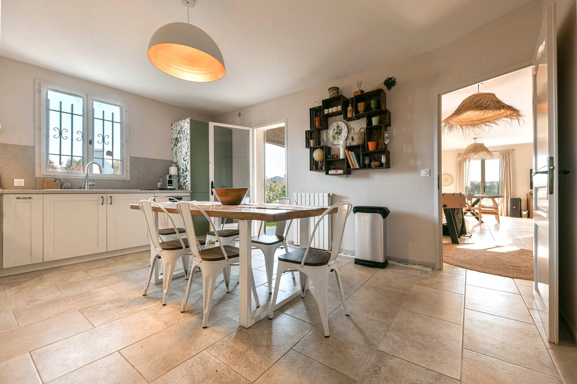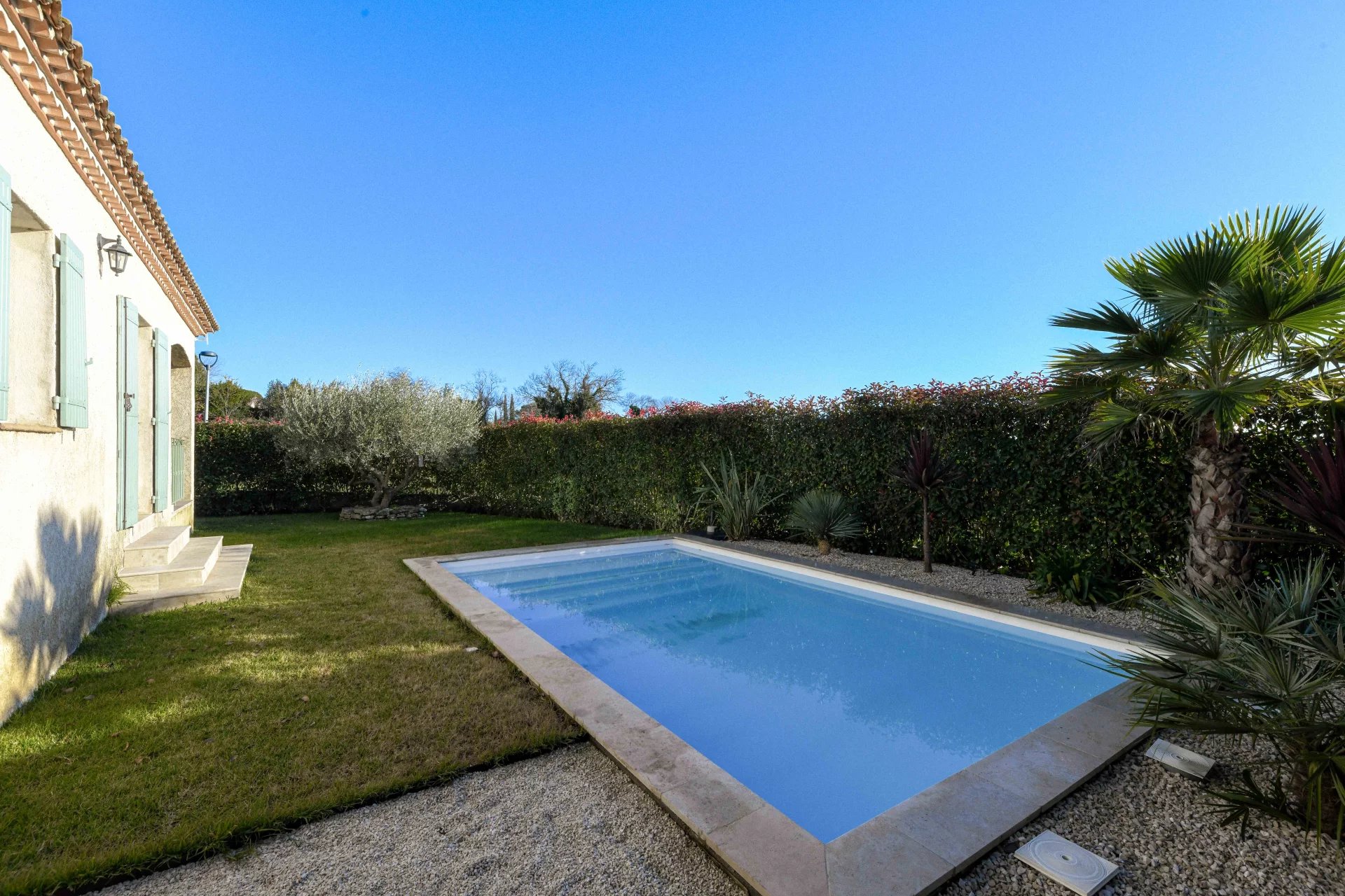 Belle pièce de réception de 50 m² ouverte sur terrasse et piscine 3 chambres, salle de bains, cuisine équipée Restauration totale 2023, belle parcelle plein Sud Garage, chauffage central et climatisations réversibles